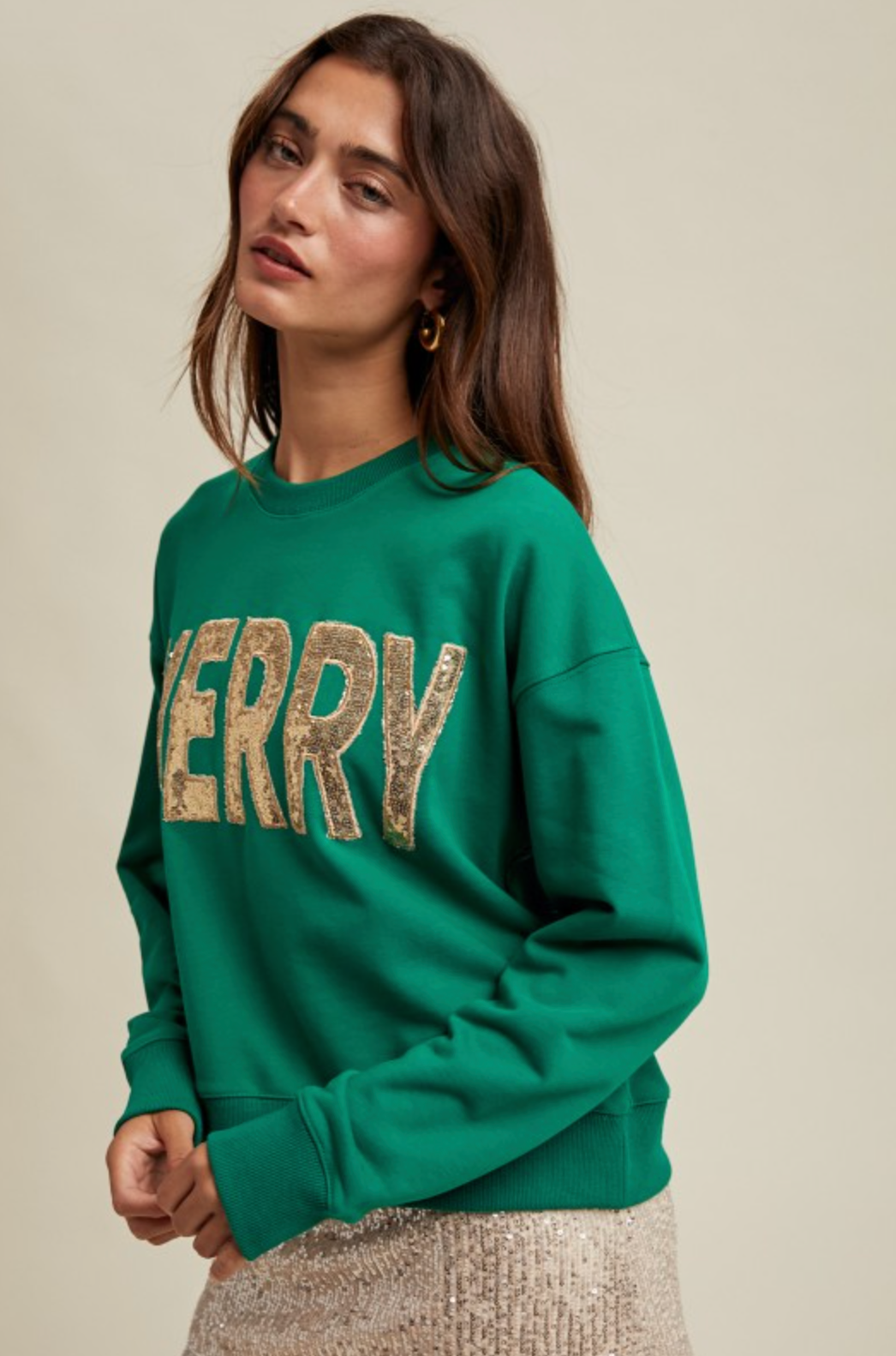 MERRY SEQUIN SWEATSHIRT-GREEN