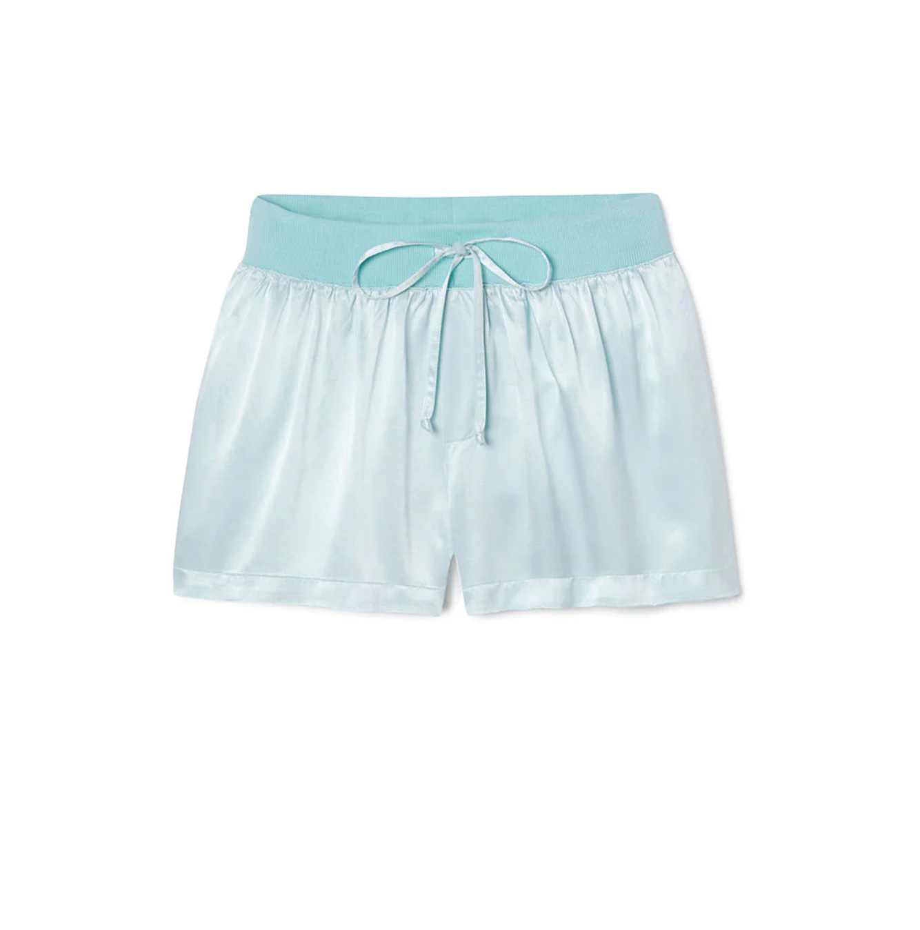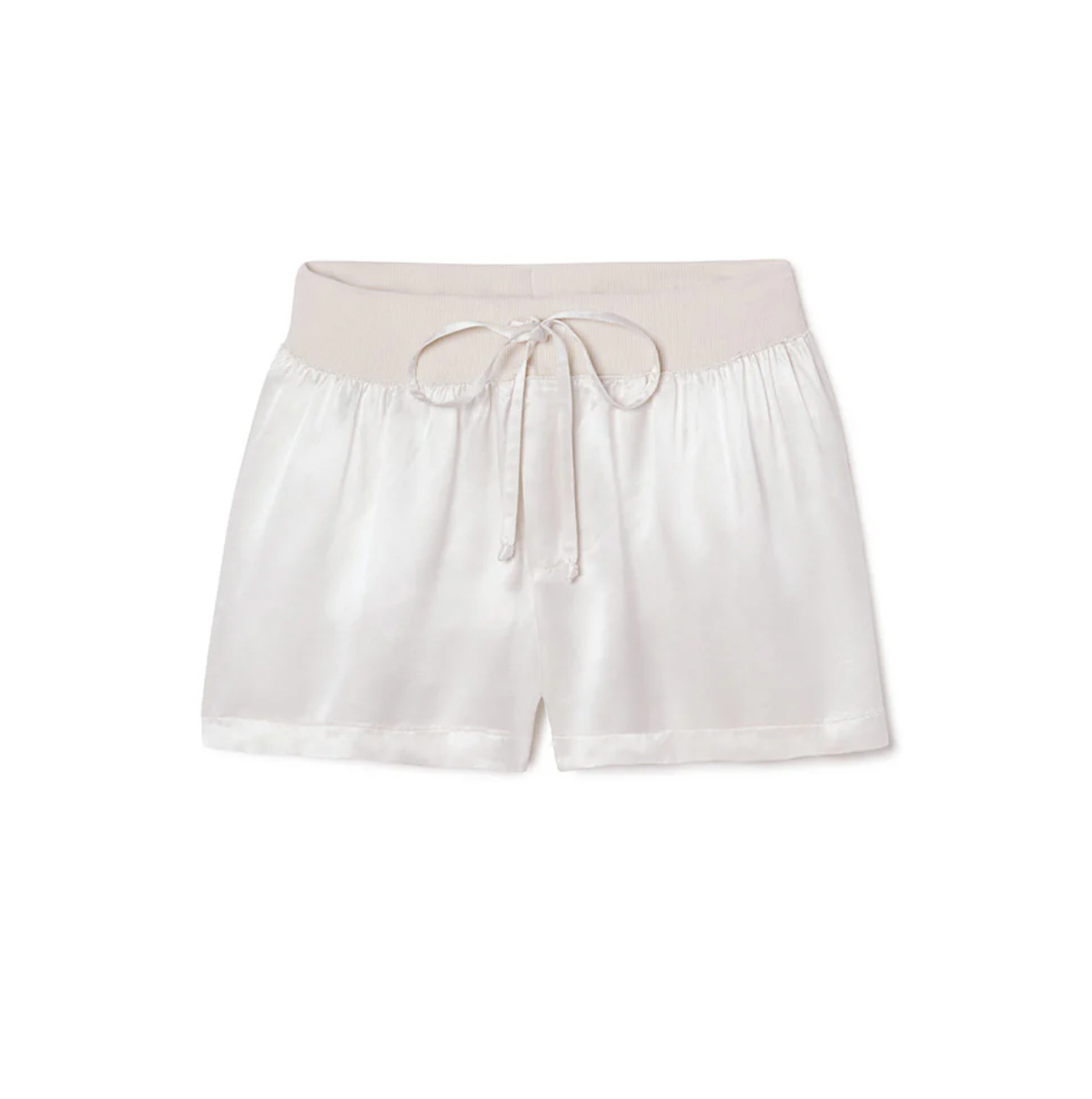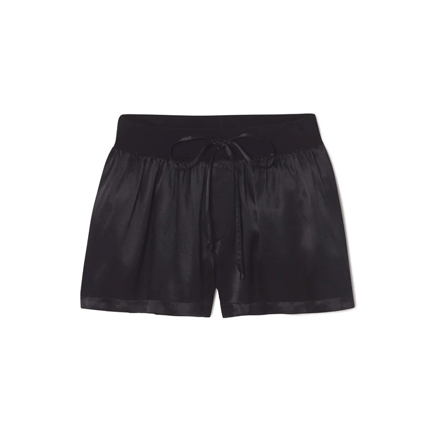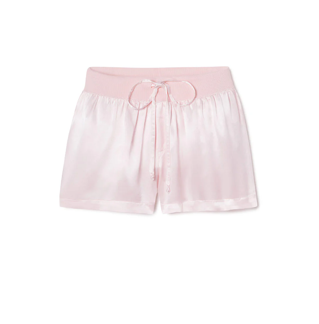 Satin Short With Rib Knit Waistband And Adjustable Drawstring
