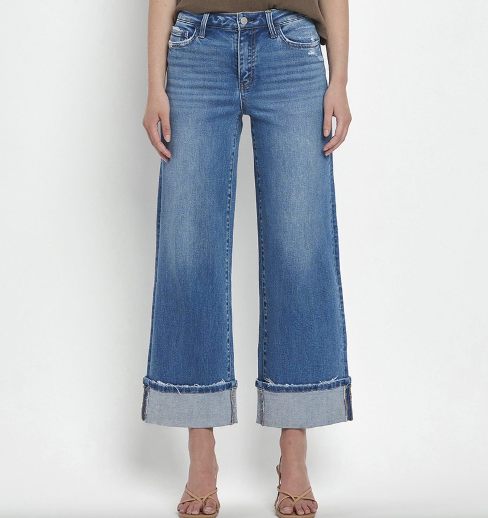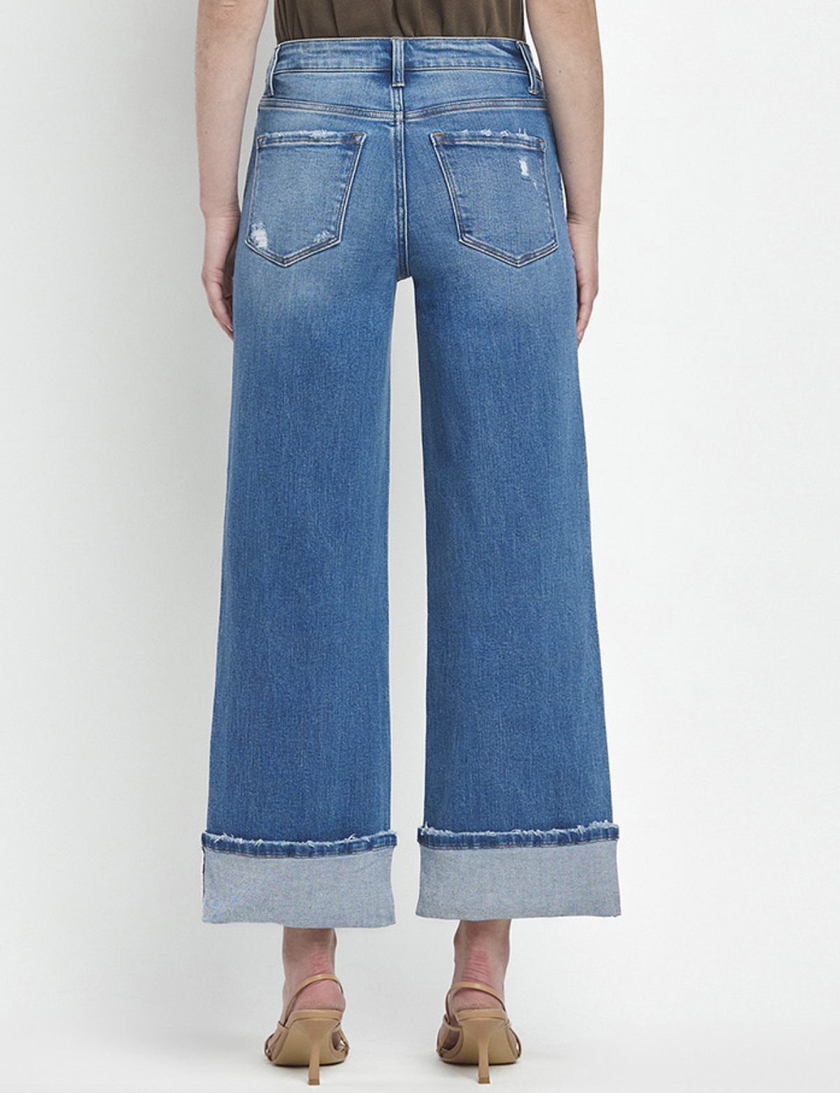 MOORLAND HIGH RISE CUFF WIDE LEG JEAN