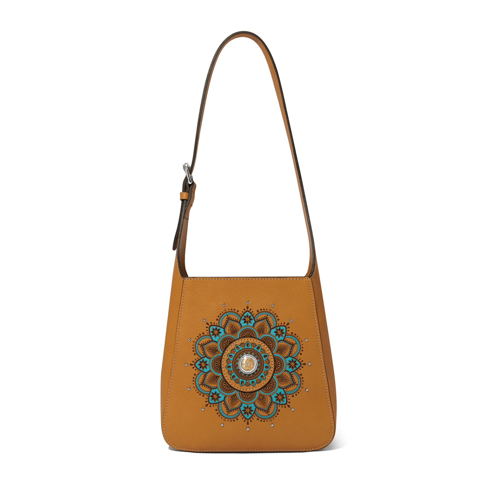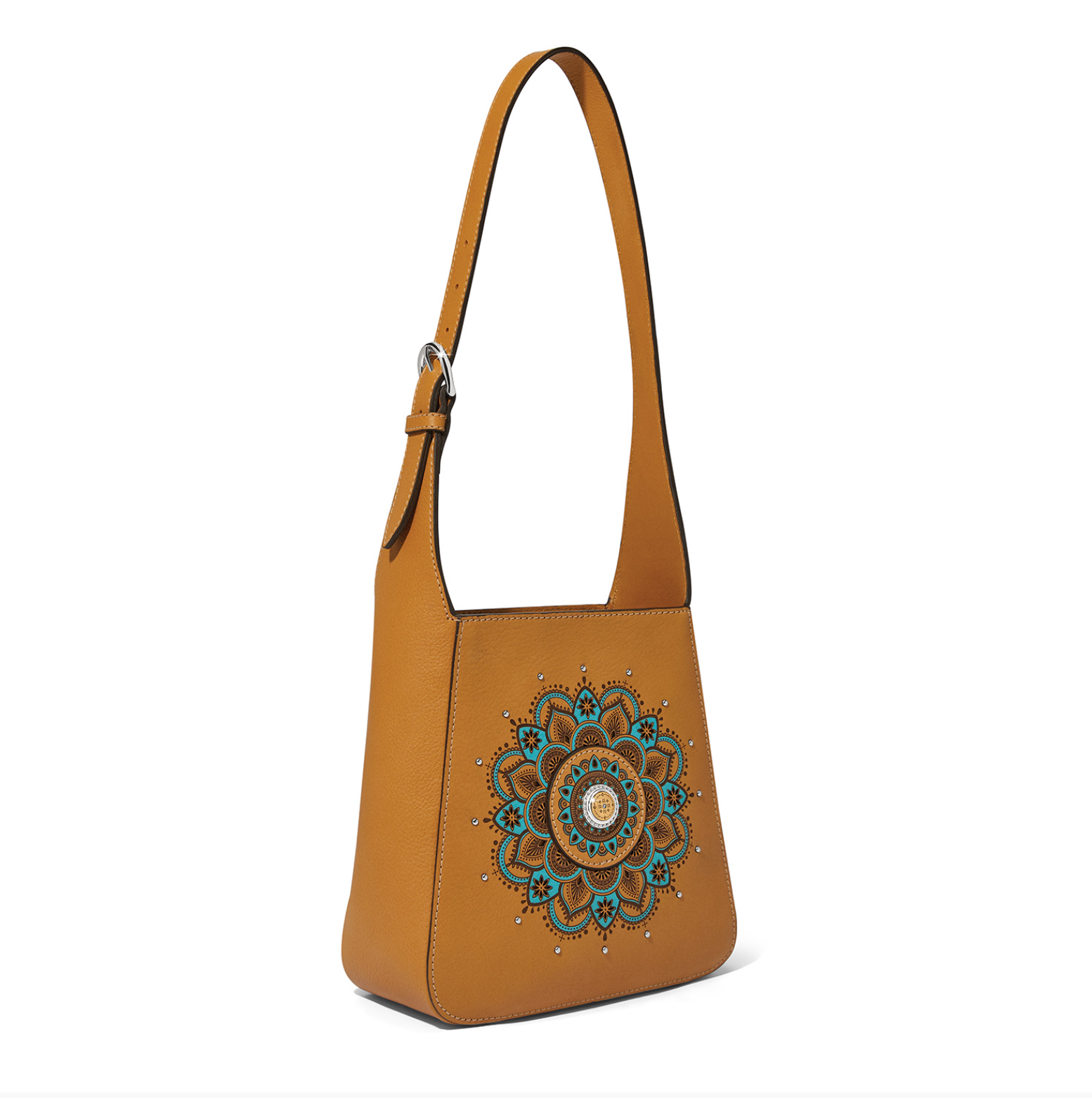 The Talavera Tile of Mexico continues to lend inspiration to the leathers in the Mosaic collection, rustic yet incredibly detailed. These masterworks of artisanship like this hobo bag have luminous hardware accents – a counterpoint to the luxe leathers.