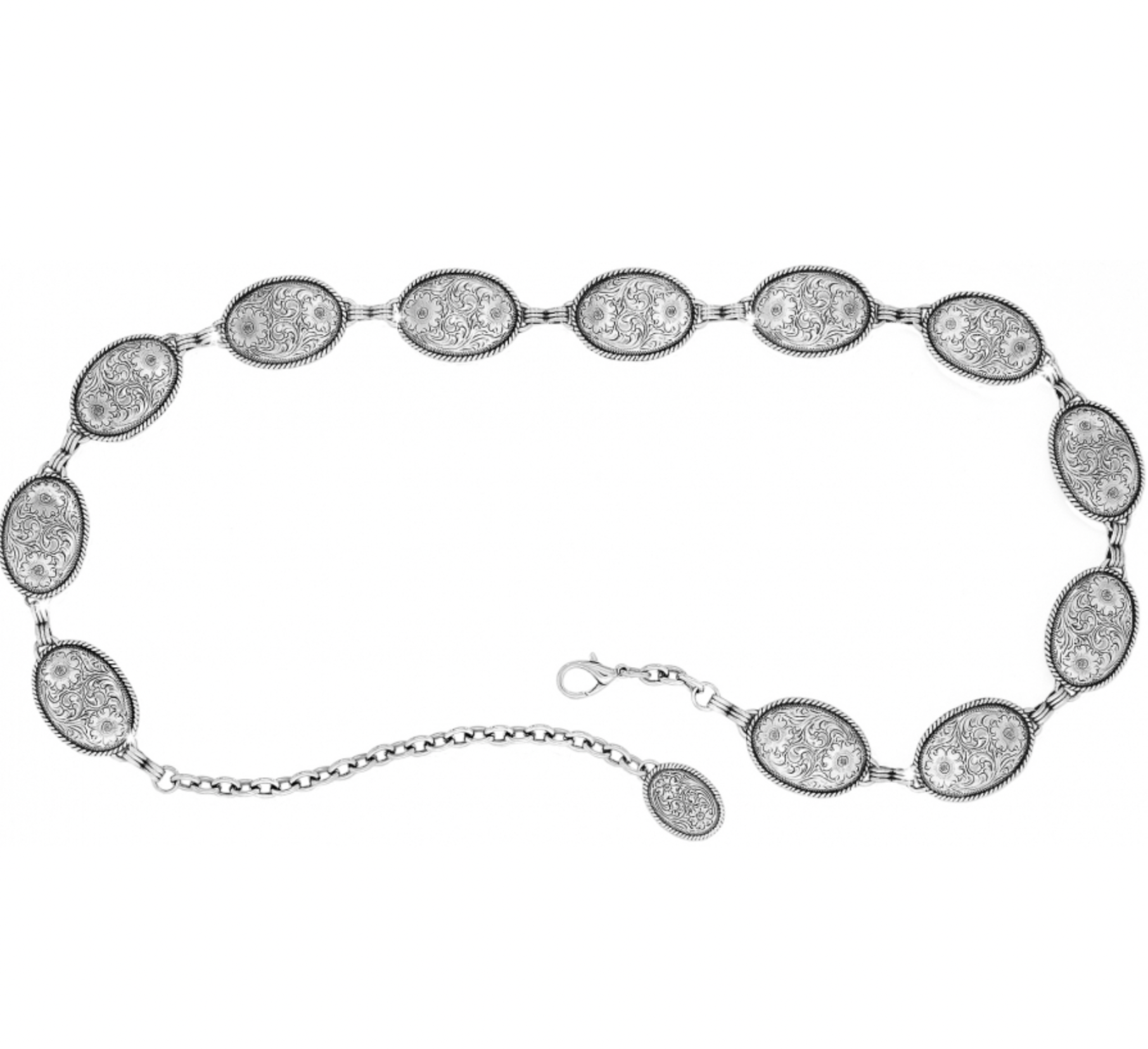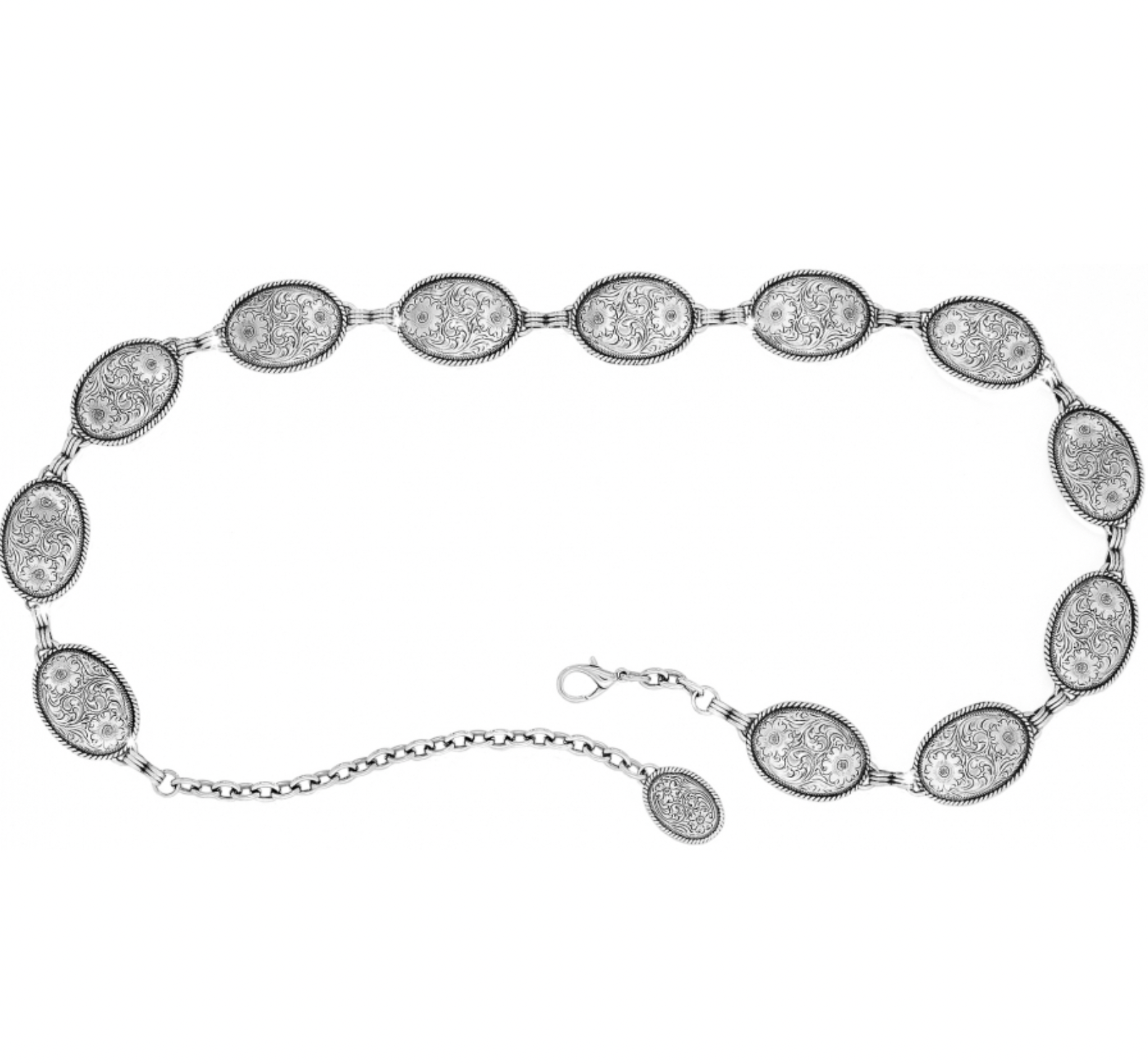 Engraved with subtly Southwestern flowers, this concho-inspired belt has a Boho feel that is both sophisticated and effortless.