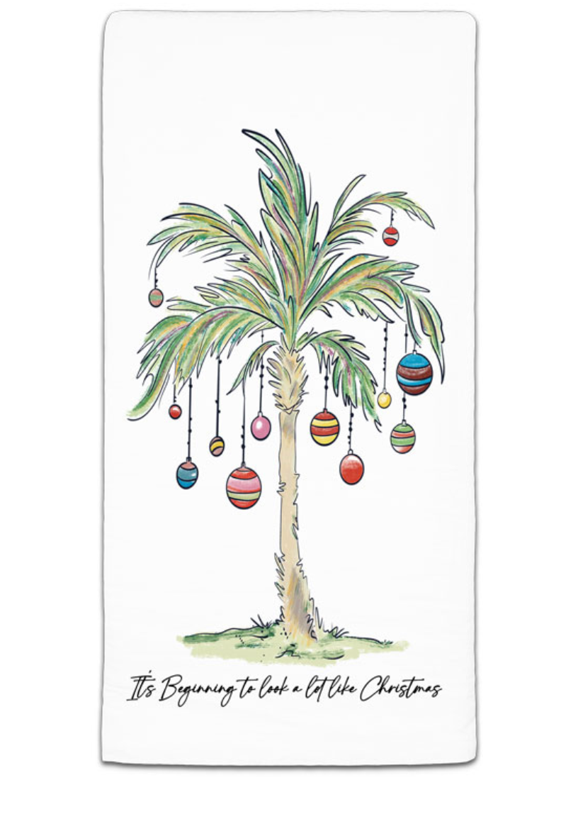 PALM TREE WITH ORNAMENTS FLOUR SACK TOWEL