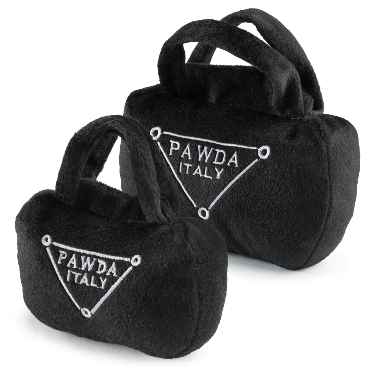 The doggo chews Pawda–or at least they can now, with this sleek Pawda Handbag toy! The plush, velvety exterior hides a devilishly-delightful squeaker inside that will drive your dogs crazy! This Italian furshion accessory is available in two sizes for pampered pups of all dental dimensions.