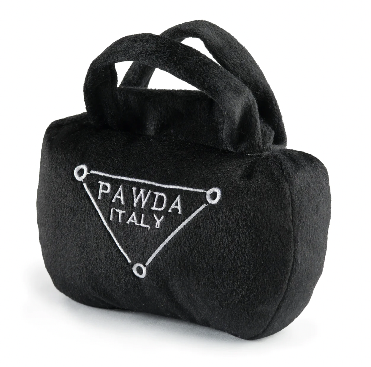 The doggo chews Pawda–or at least they can now, with this sleek Pawda Handbag toy!