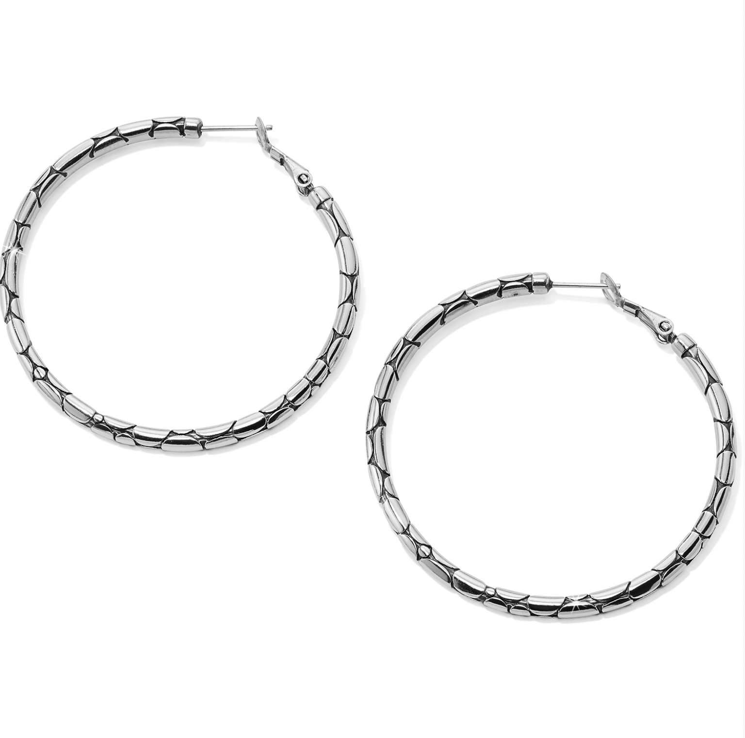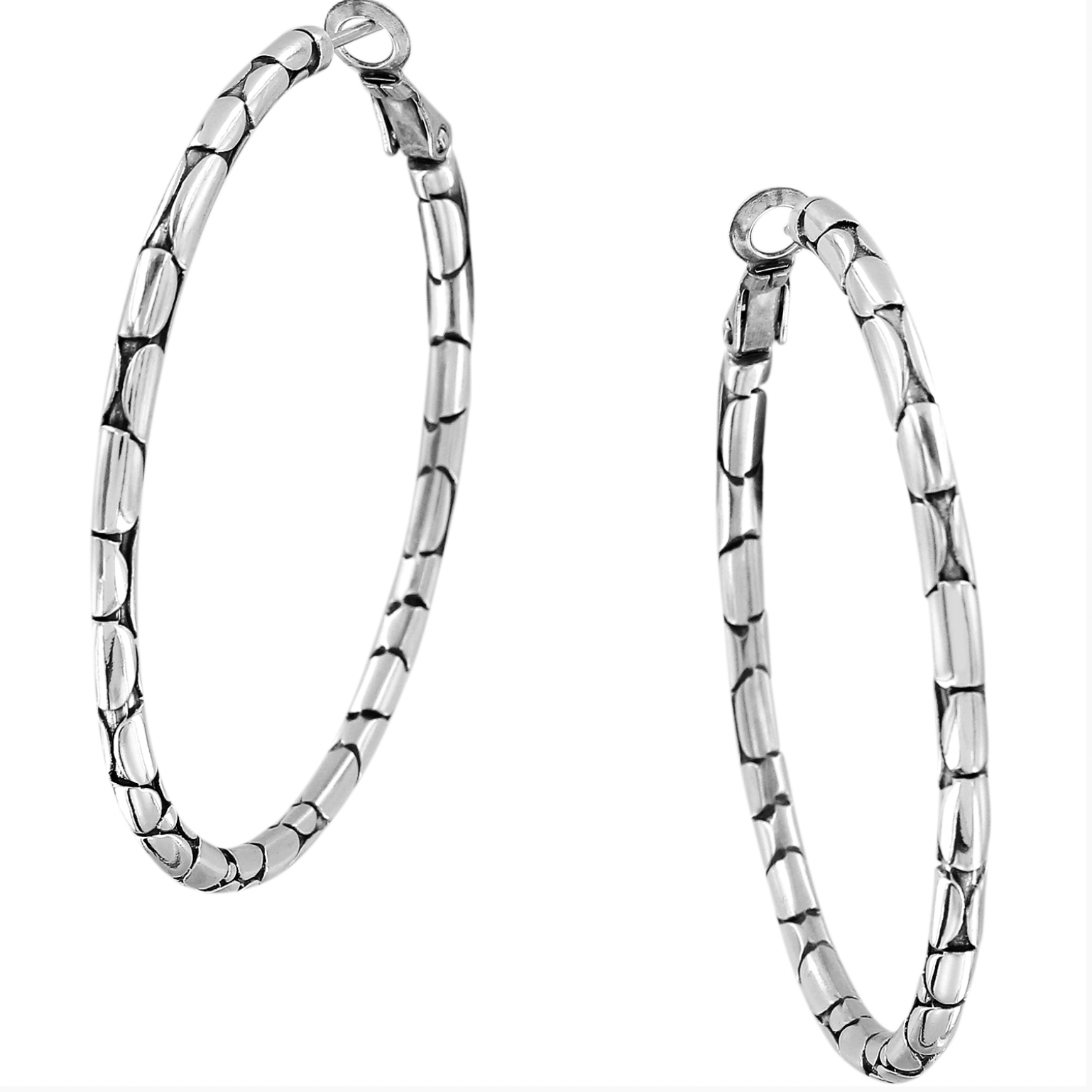 This pebble pattern lends an earthy, organic feel to these classic hoops.