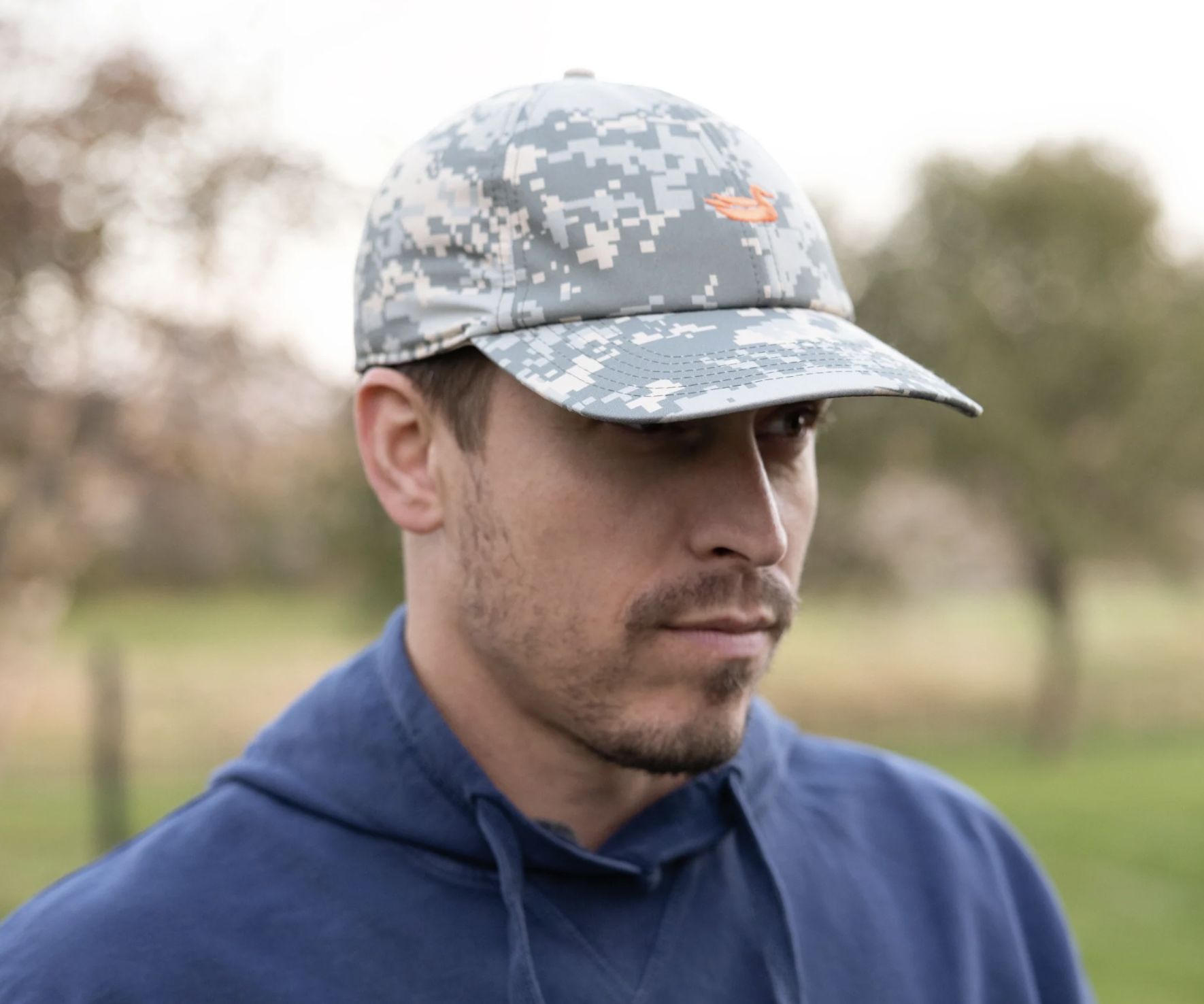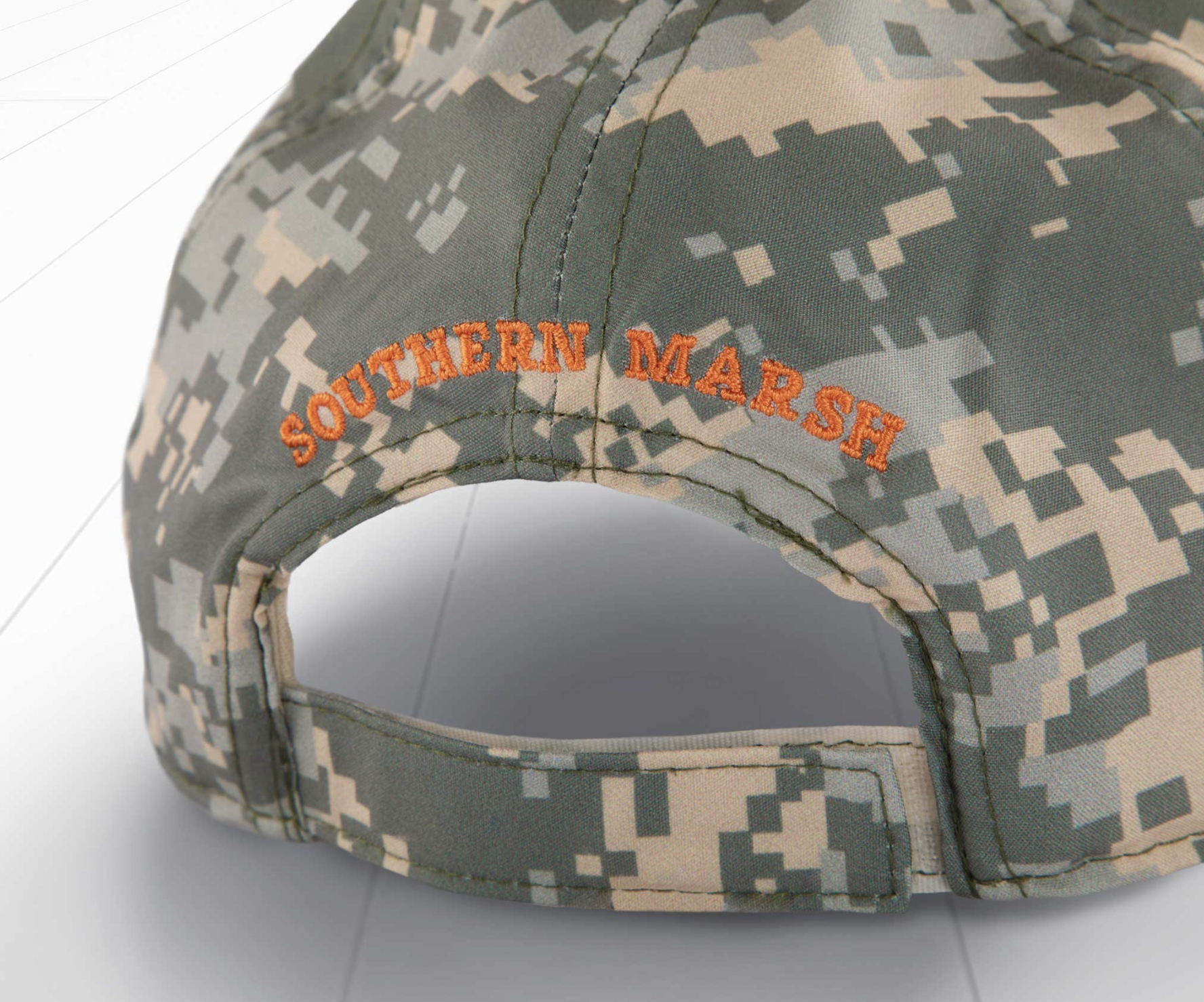 Designed to break up the outline of a hunter, the custom pattern and dark colors make it the perfect performance hat for your next hunting or camping trip. Crafted with a hint of spandex, the performance material is stretchy and breathable to create an ultra-comfortable fit. Finished with an adjustable velcro strap and a bright orange mallard Southern Marsh logo embroidered on the front.