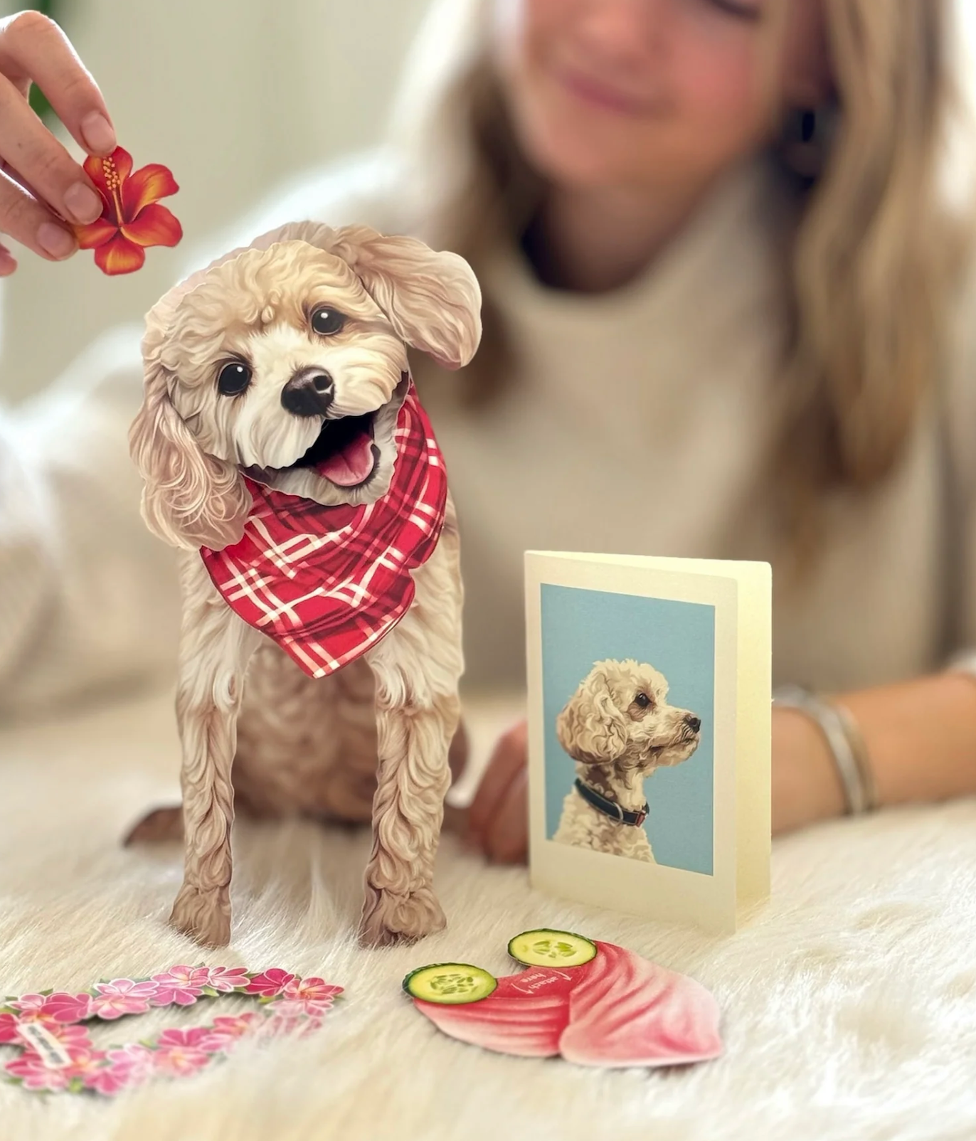FreshCut Paper’s intricately designed pop-up Poodles are a tribute to their elegance and charm, spreading joy and delight with their poodle perfection. Each pop-up pet comes with a matching notecard, mailing envelope, adorable interchangeable accessories, and a customizable speech bubble to add your personal touch. These paper Poodles aren’t just fetching, they are a heartfelt reminder of the unwavering love and devotion of friends and family.
