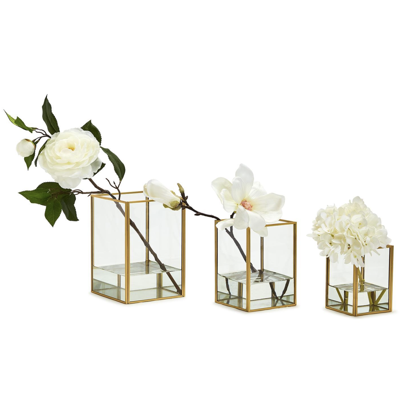 These exquisite gold-trimmed windowed vases are the perfect place for flowers and greenery creating an inspiring 360-degree display of beauty