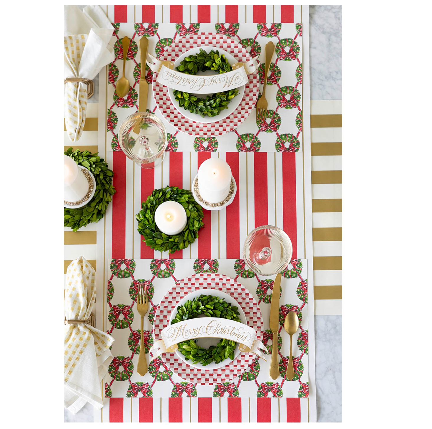 This Red & Gold Awning Stripe Runner is a beautiful base for all of your celebratory occasions!