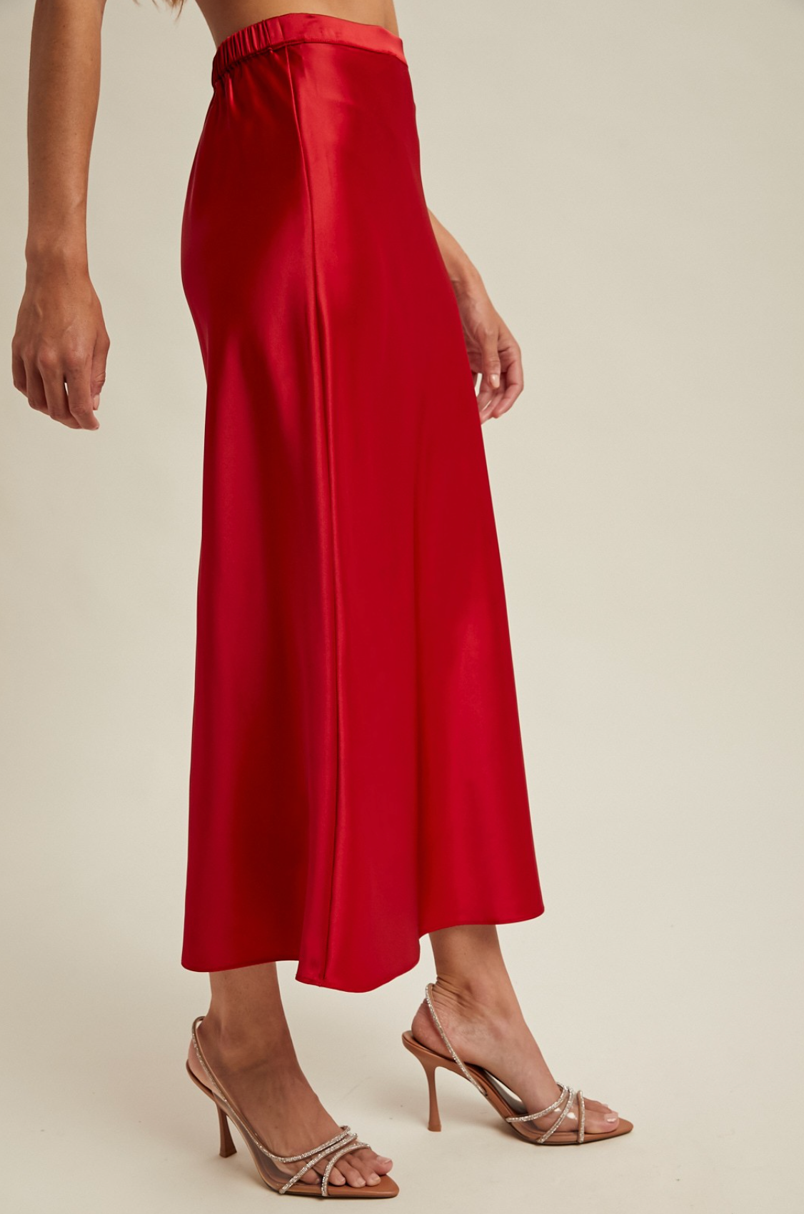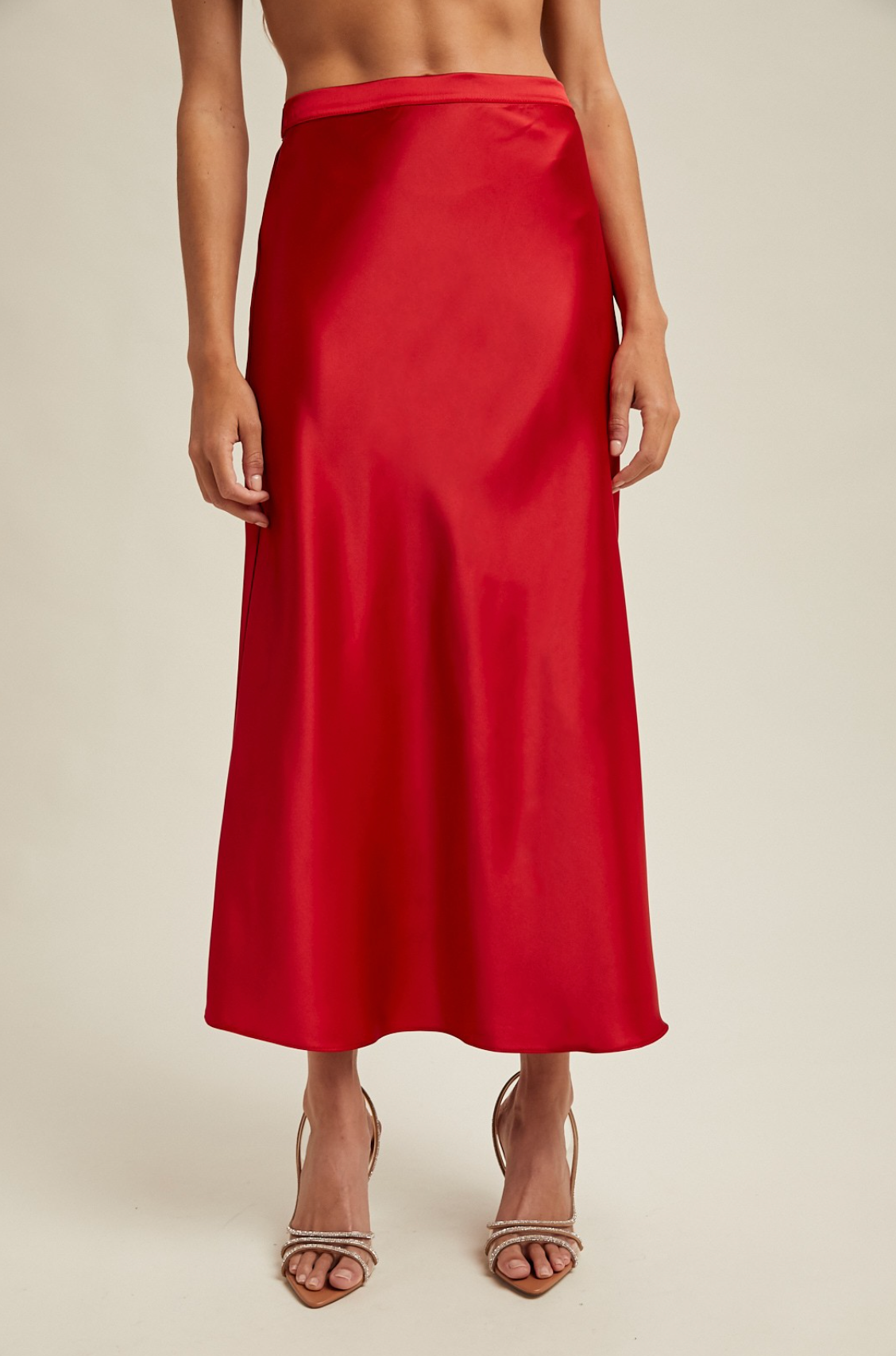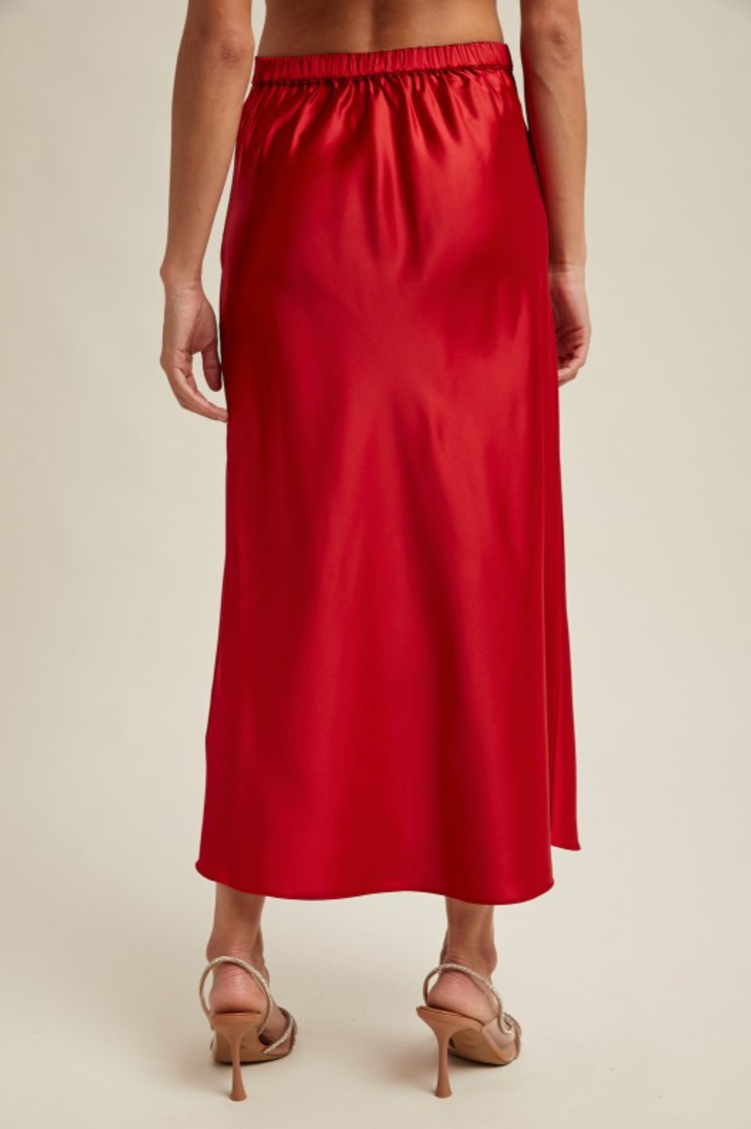 RED SATIN MIDI SKIRT