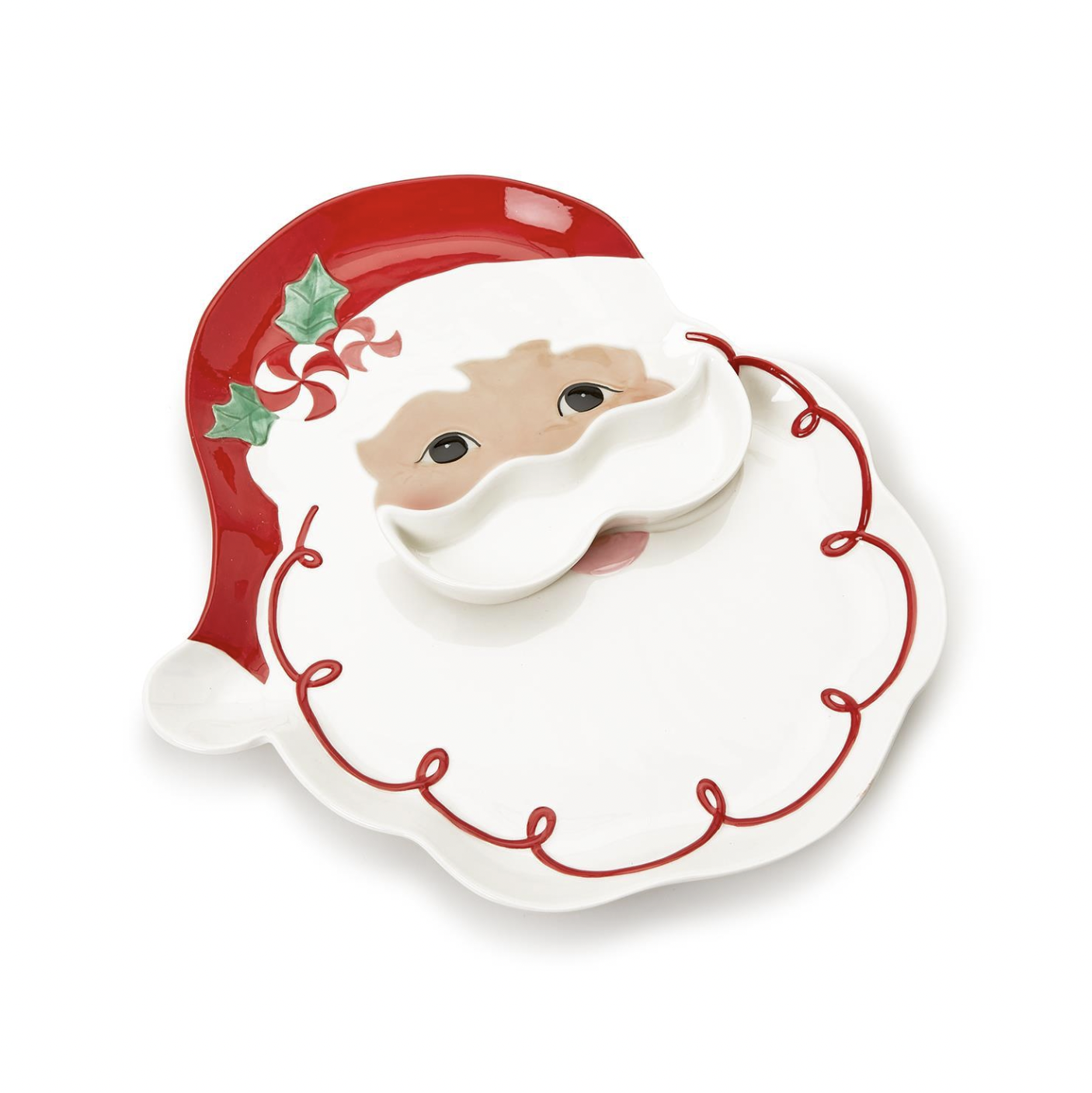 Santa Platter with Removable Mustache Dipping Bowl (food safe, dishwasher safe) - Dolomite