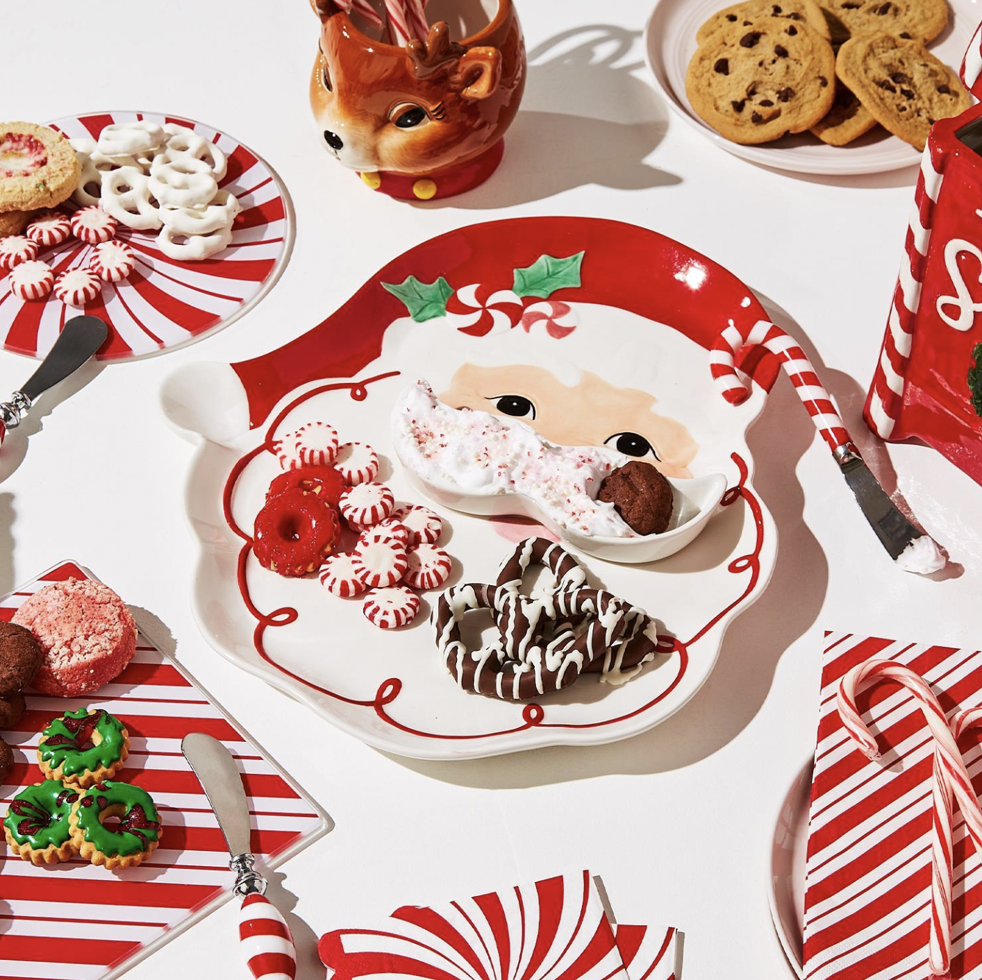 This fun and whimsical holiday platter will be center stage at your holiday get together. Featuring a Santa with removeable moustache bowl, it is the perfect way to serve dips, cookies, and a variety of other goodies. Use with or without the moustache bowl for maximum versatility.