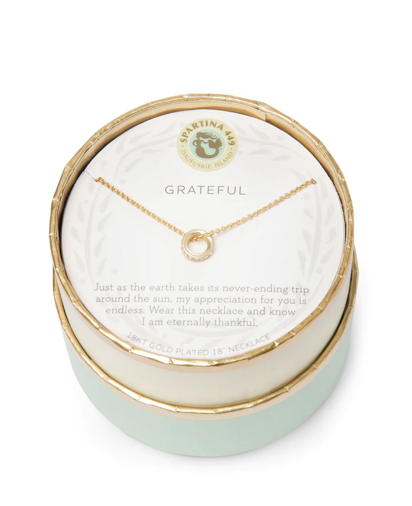 Wear this Grateful Necklace as a reminder of appreciation. Featuring a ring charm, this special piece comes packaged inside a beautiful box with the message: "Just as the earth takes its never-ending trip around the sun, my appreciation for you is endless. Wear this necklace and know I am eternally thankful."