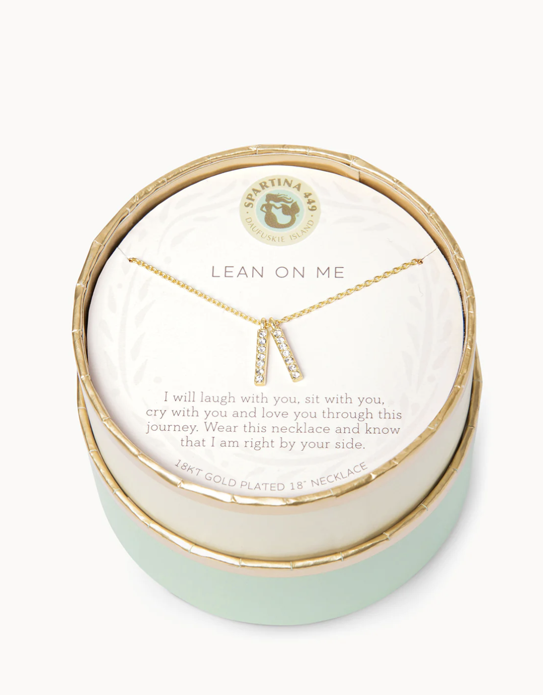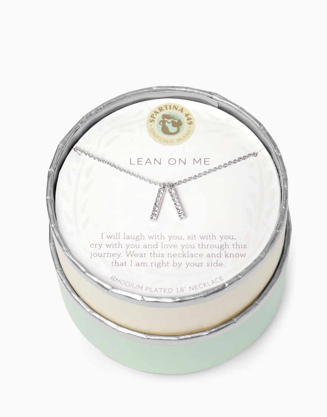 Wear the Lean On Me Necklace as a reminder your friends are there for you. Featuring a double bar pendant, this special piece comes packaged inside a beautiful box with the message: "I will laugh with you, sit with you, cry with you and love you through this journey. Wear this necklace and know that I am right by your side."