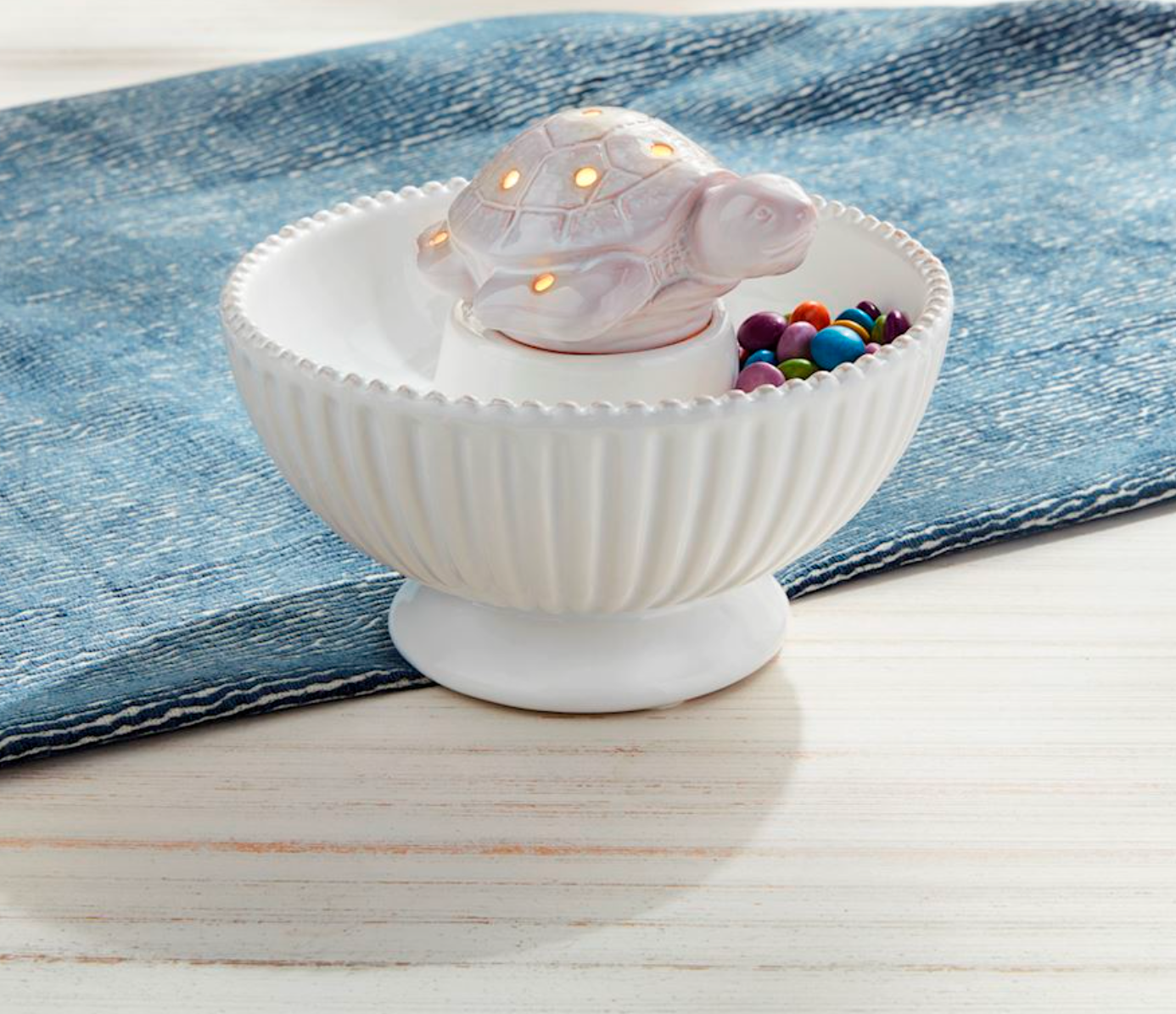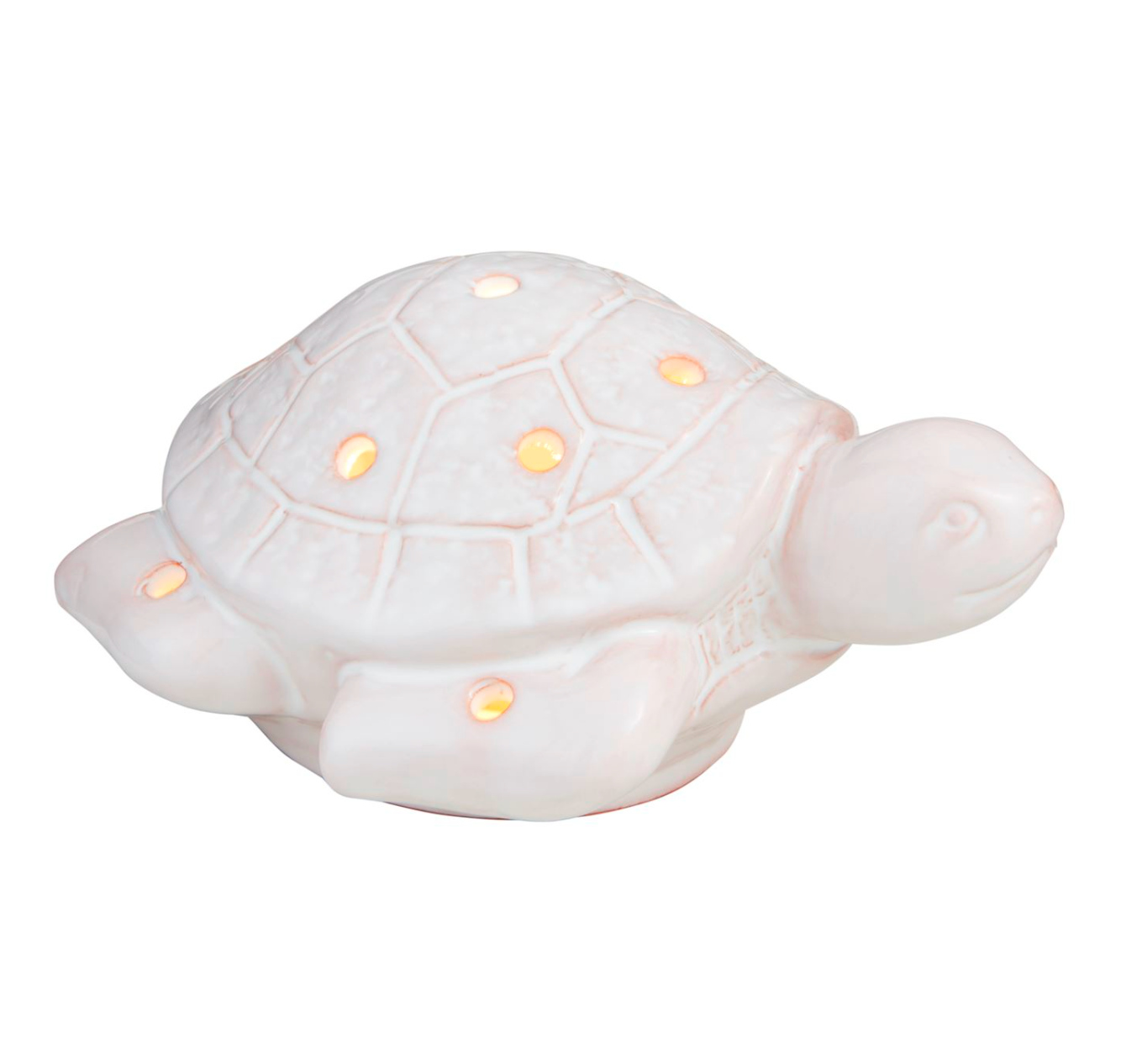 Ceramic sitter with cut-out LED light-out detail. Battery included.