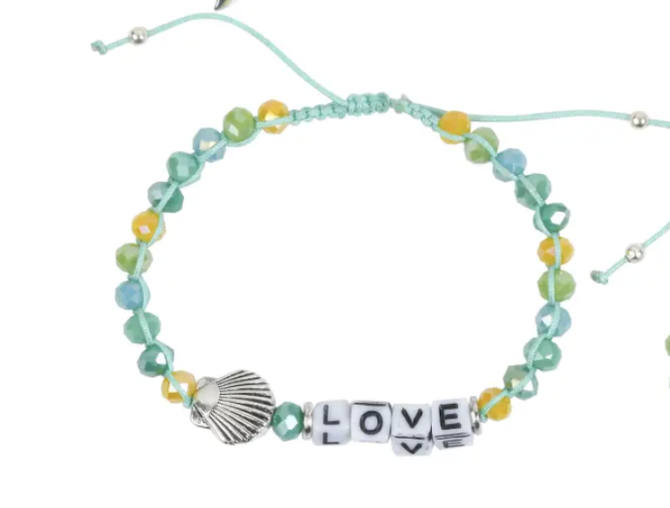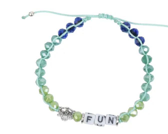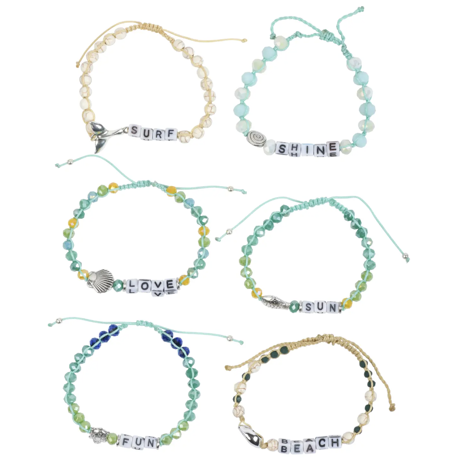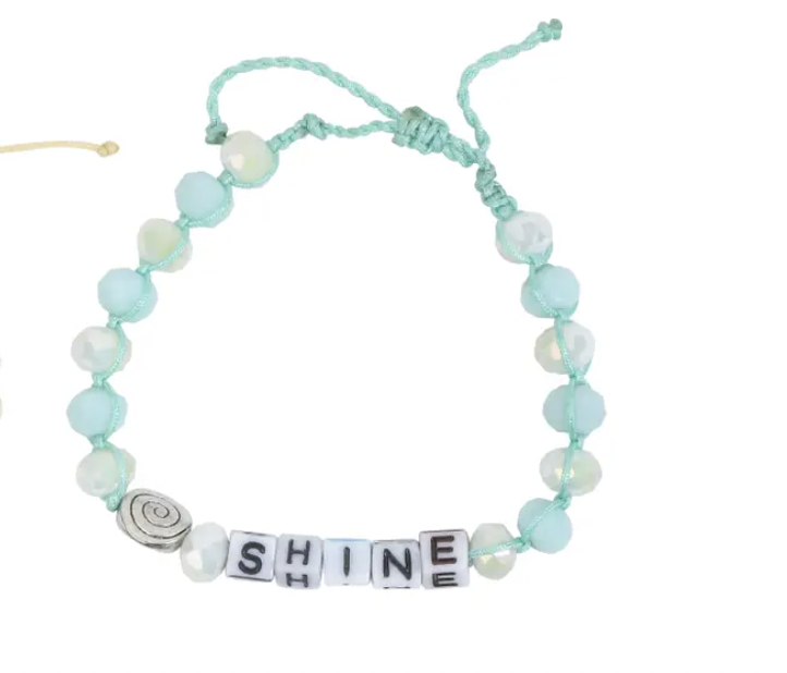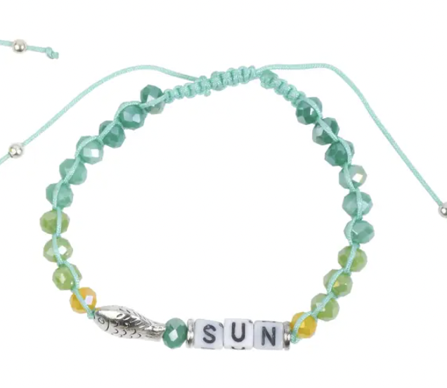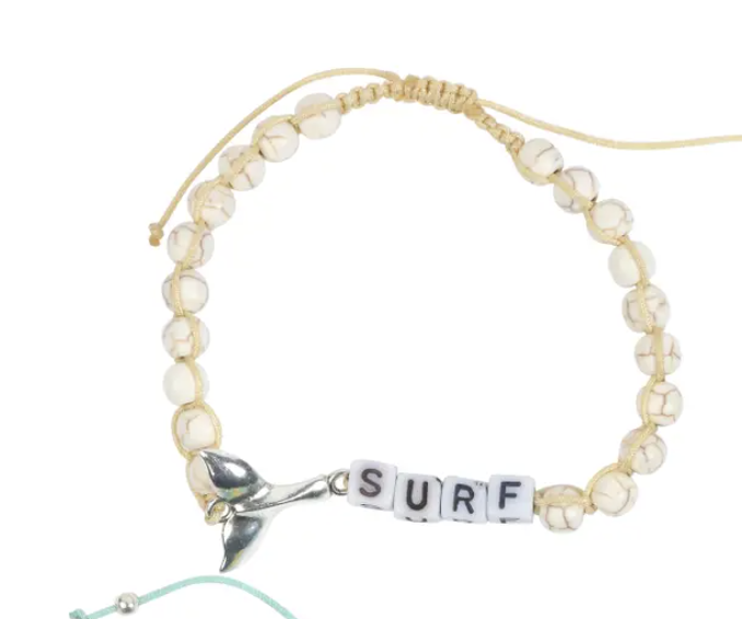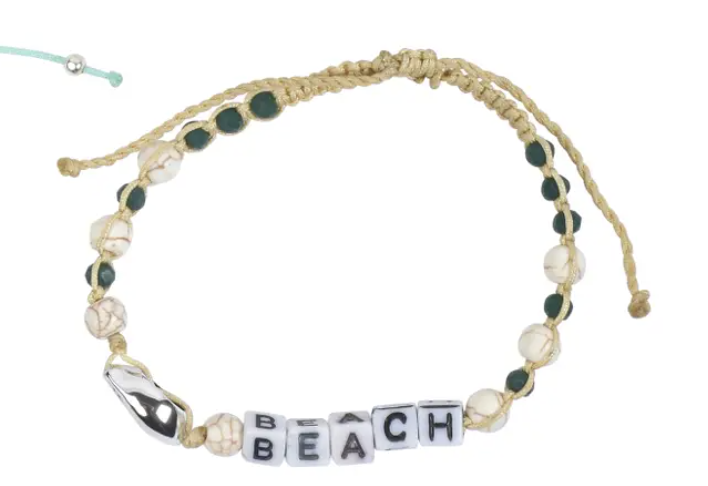Surf, shine, love, sun, fun and beach! Speak the language of the sea! These fun trendy bracelets are adjustable. Great for stacking! A portion of the proceeds from this collection helps provide clean drinking water to families in Guatemala.