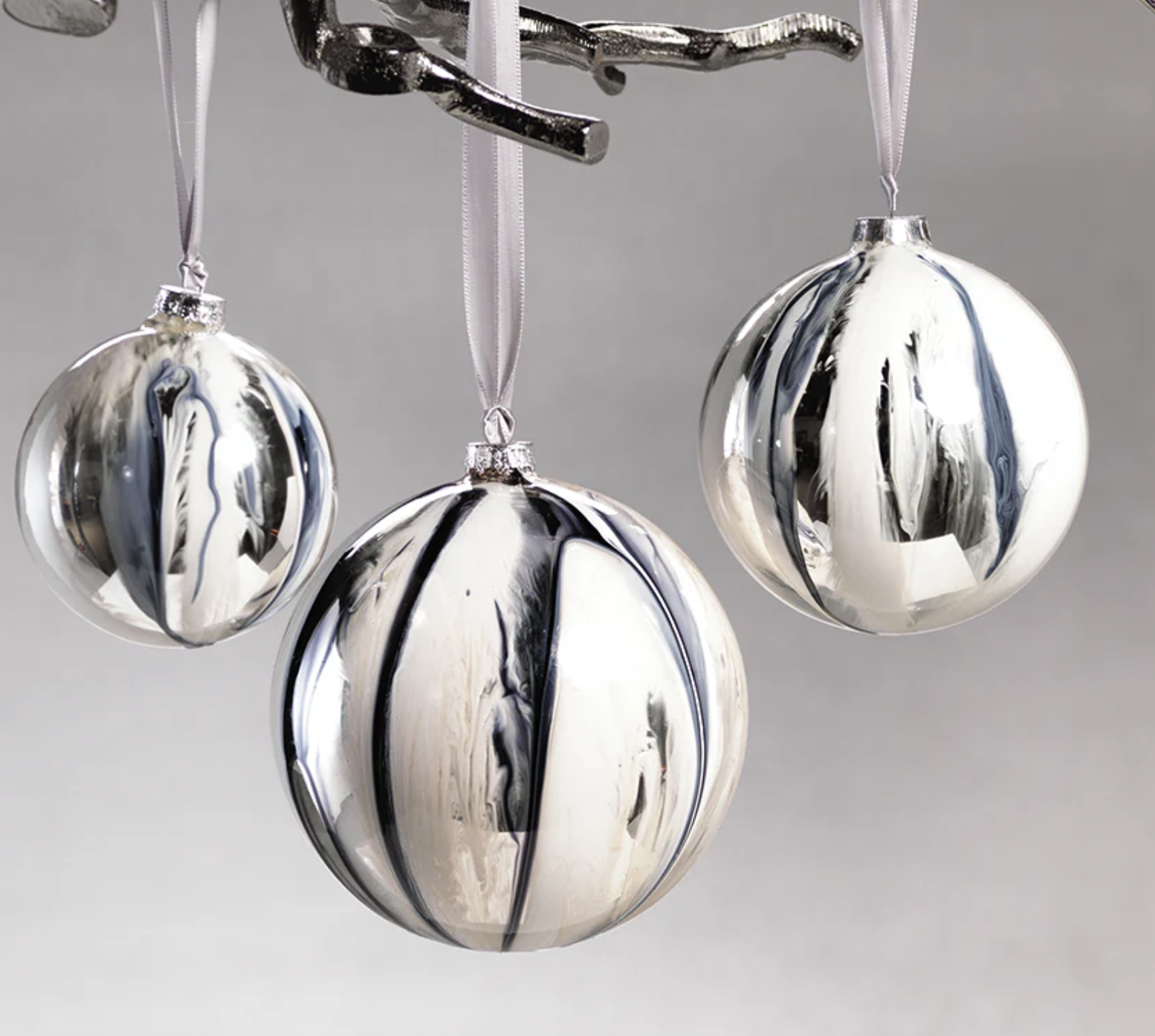 SHINY WHITE/SILVER BALL ORNAMENT- LARGE