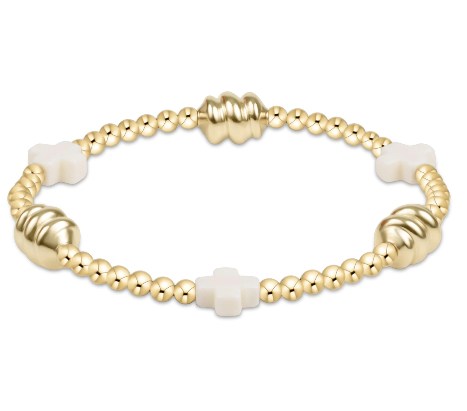 Signature Cross Admire Gold Pattern 3mm Bead Bracelet - Off-White