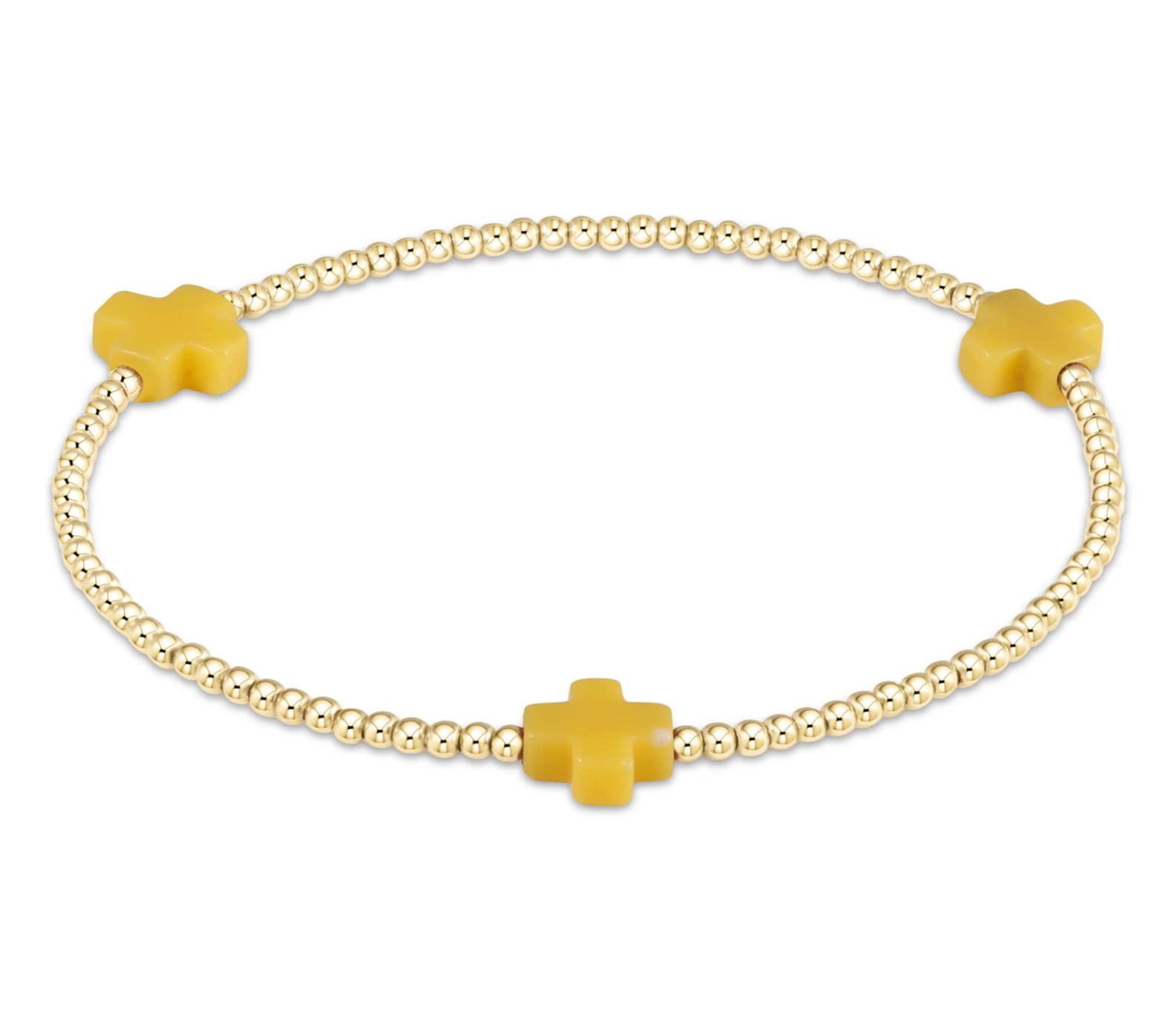 Signature Cross Gold Pattern 2mm Bead Bracelet - Canary