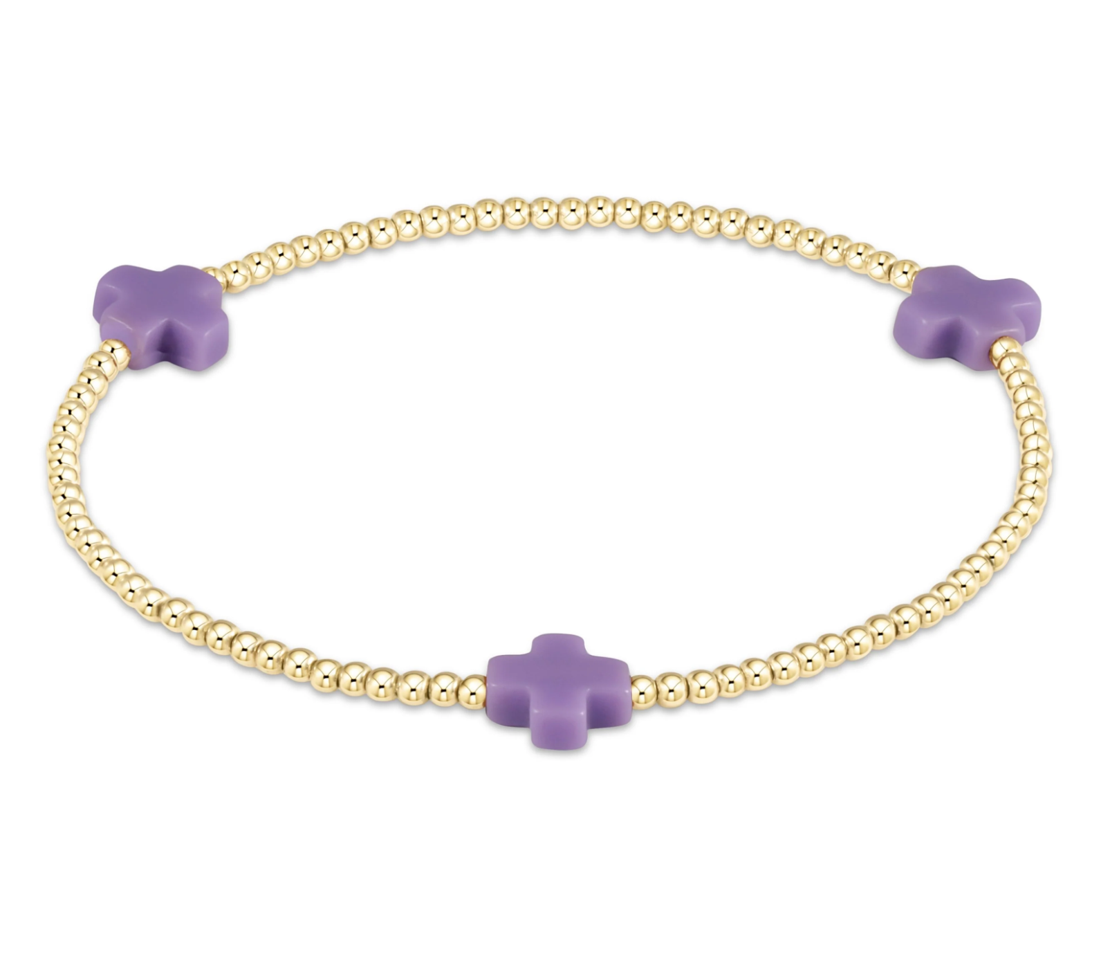 Signature Cross Gold Pattern 2mm Bead Bracelet - Purple