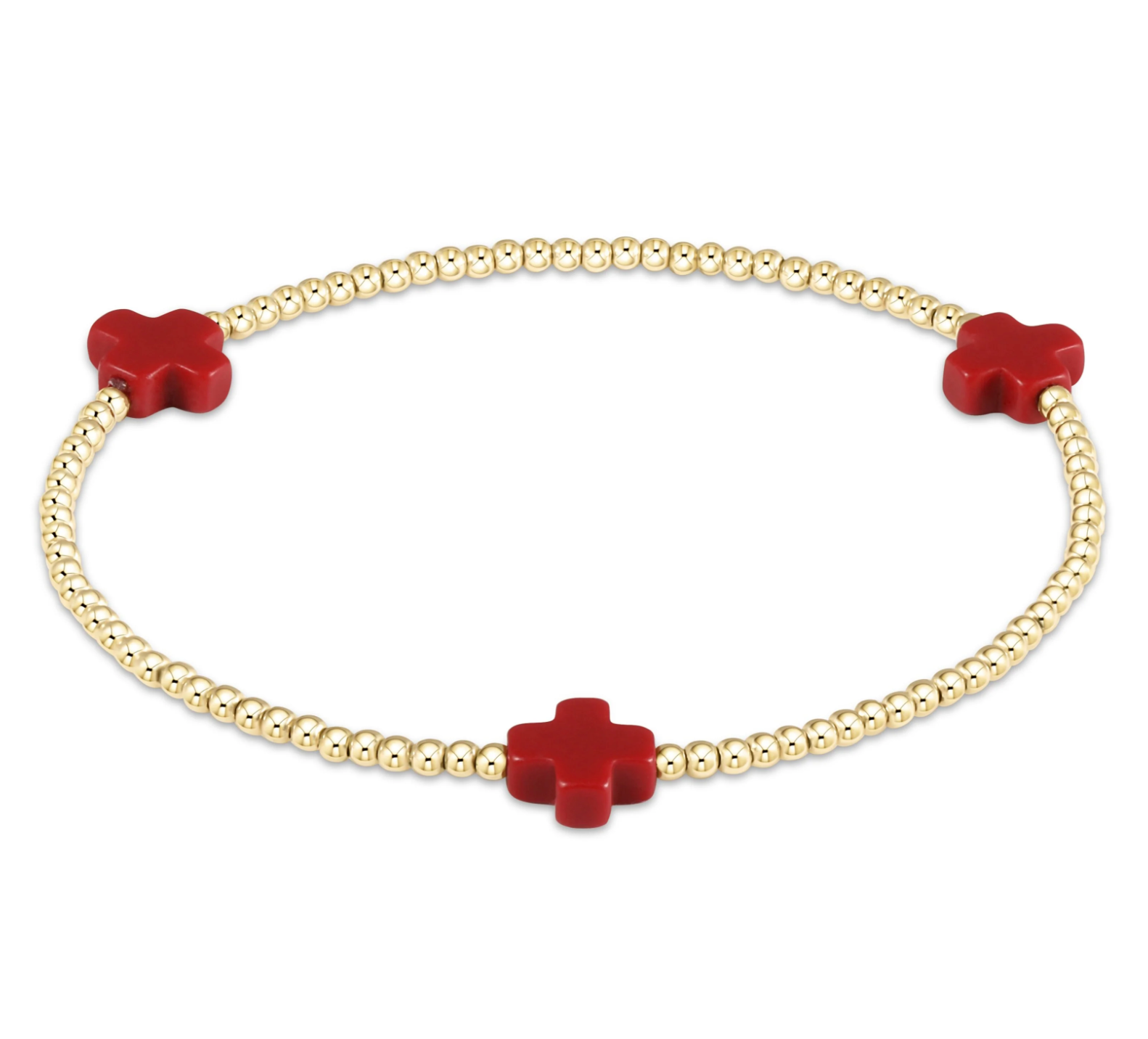 Signature Cross Gold Pattern 2mm Bead Bracelet - Red