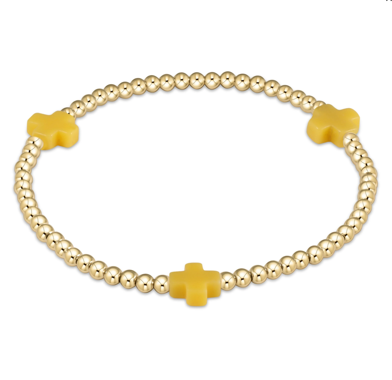 Signature Cross Gold Pattern 3mm Bead Bracelet - Canary