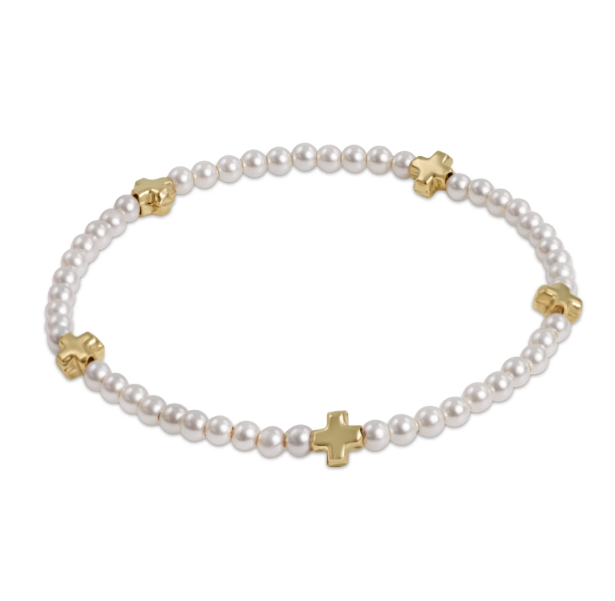 Signature Cross Small Pearl Pattern 3mm Bead Bracelet - Gold