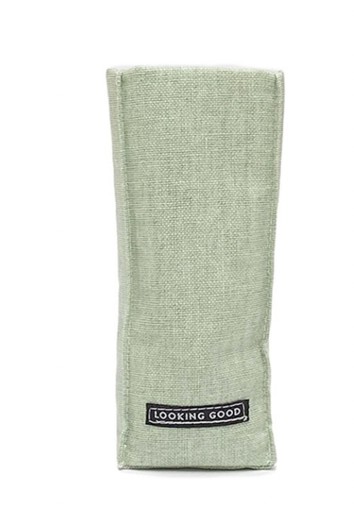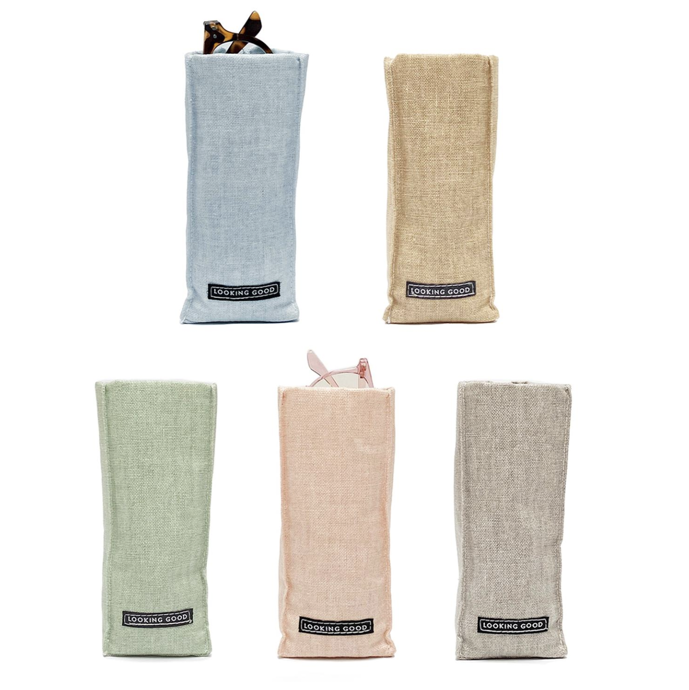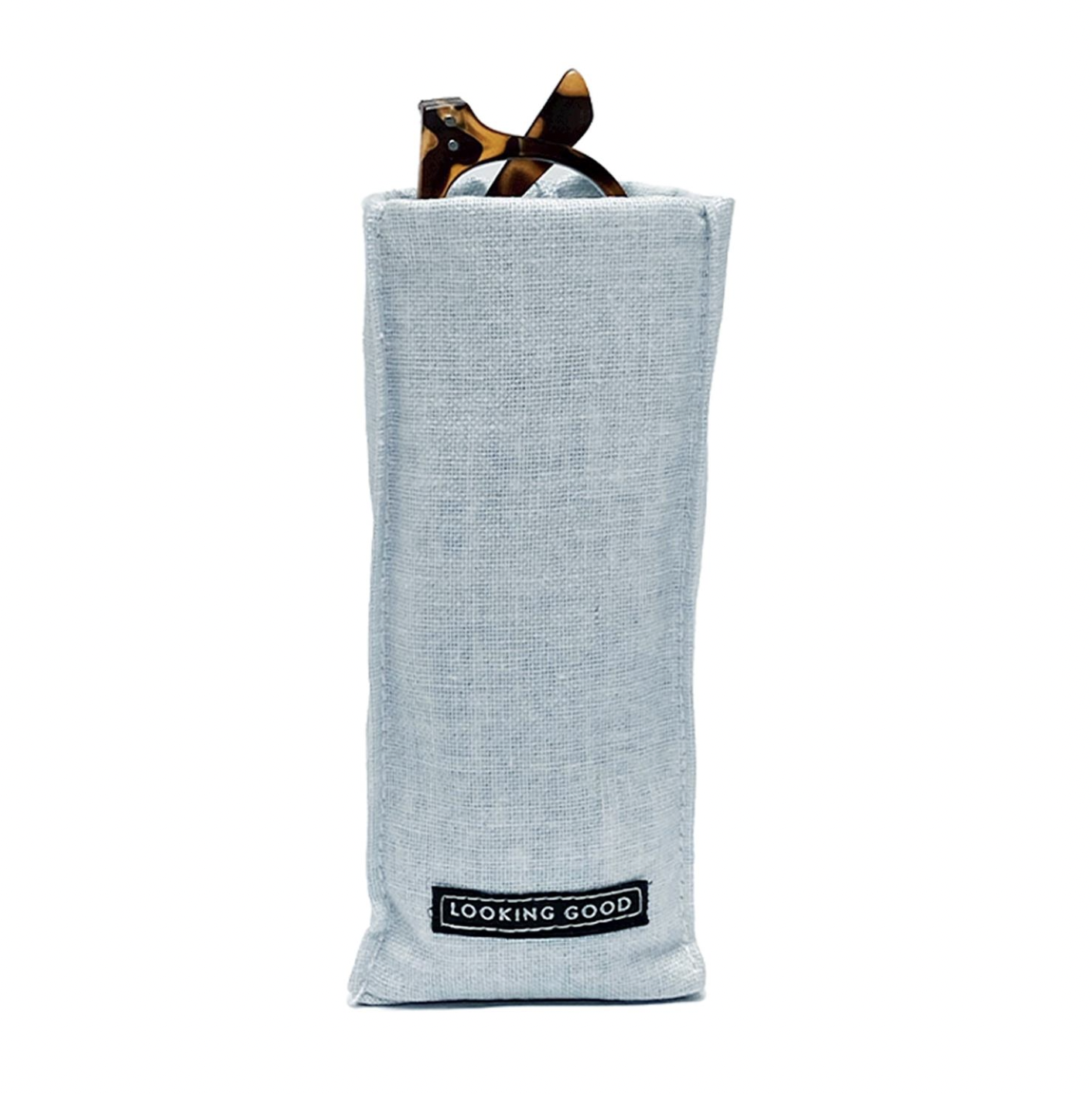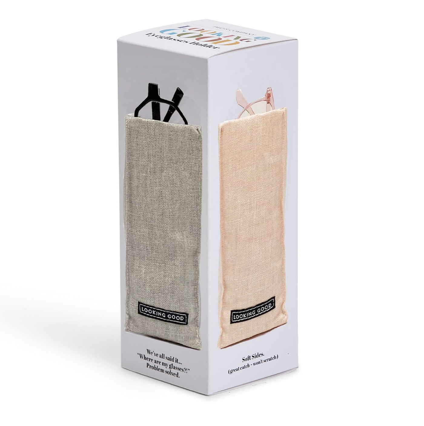 "Looking Good" Standing Triangular Weighted Eyeglass / Accessory Holder in Gift Box Assorted 5 Colors: Light Blue, Peach, Gray, Khaki, Green - Linen/Cotton/Polyester/Sand