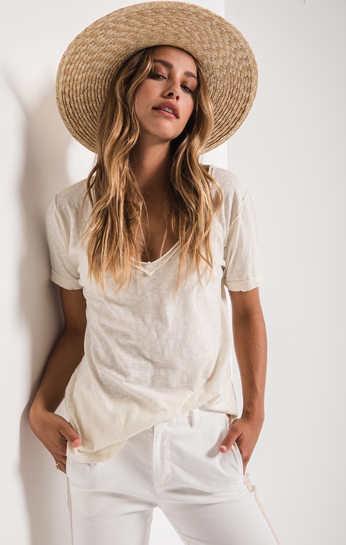 THE COTTON SLUB V-NECK TEE NATURAL L