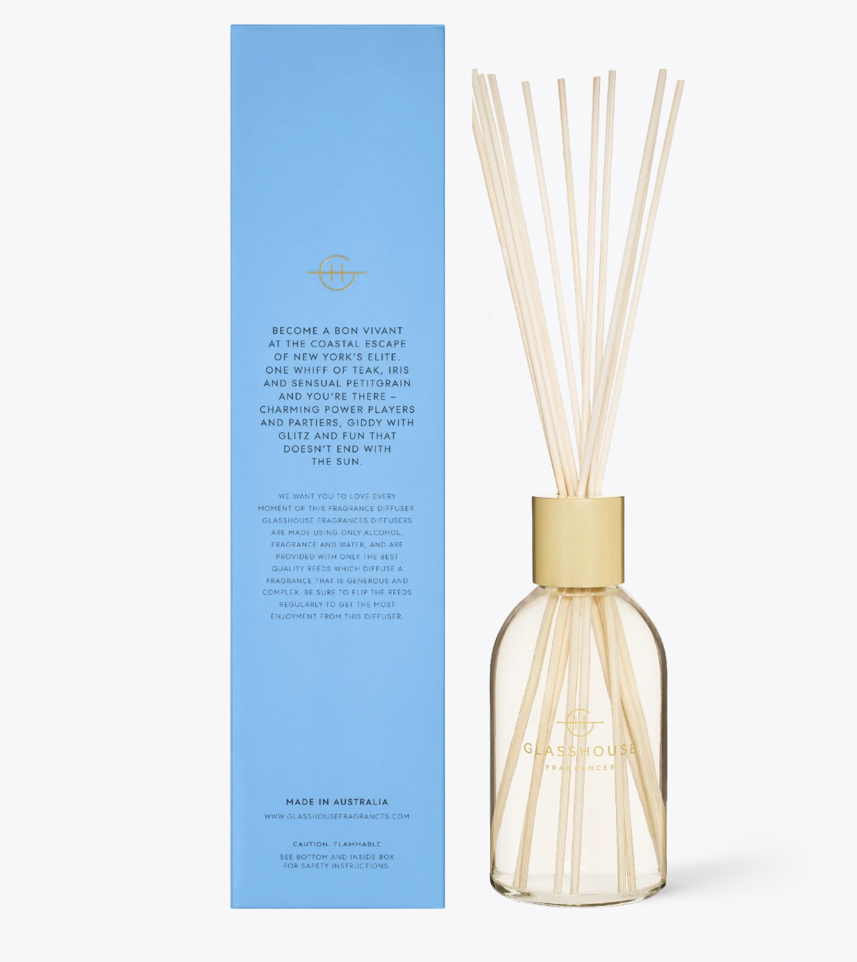Made using only alcohol, fragrance and water and are provided with only the best quality reeds which diffuse a fragrance that is generous and complex. Made in Australia.