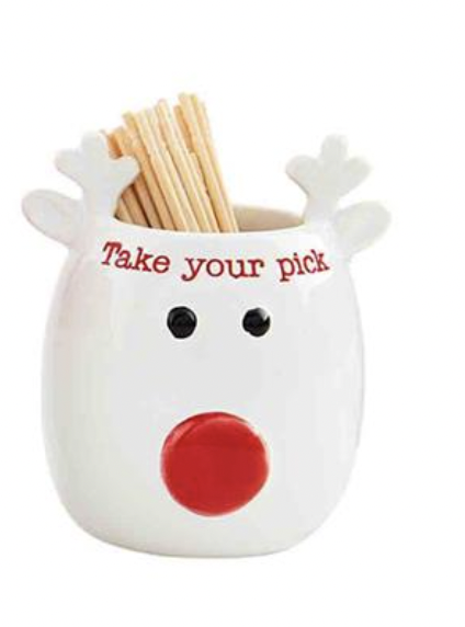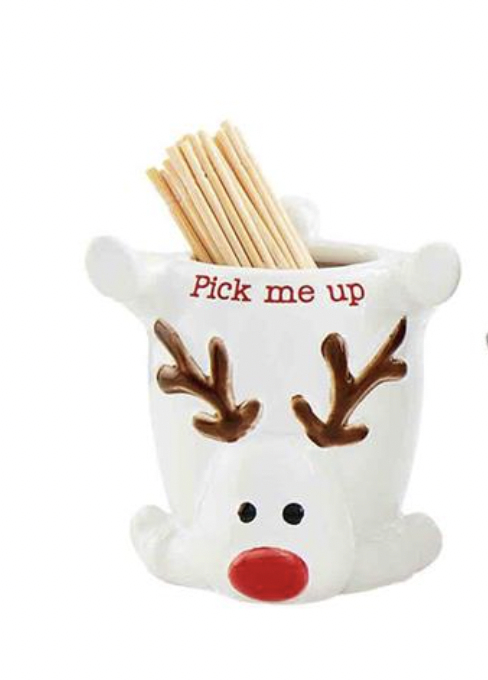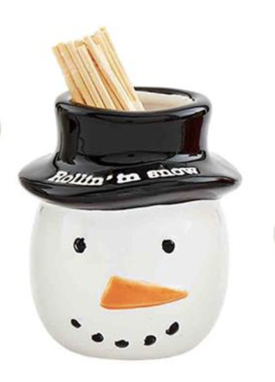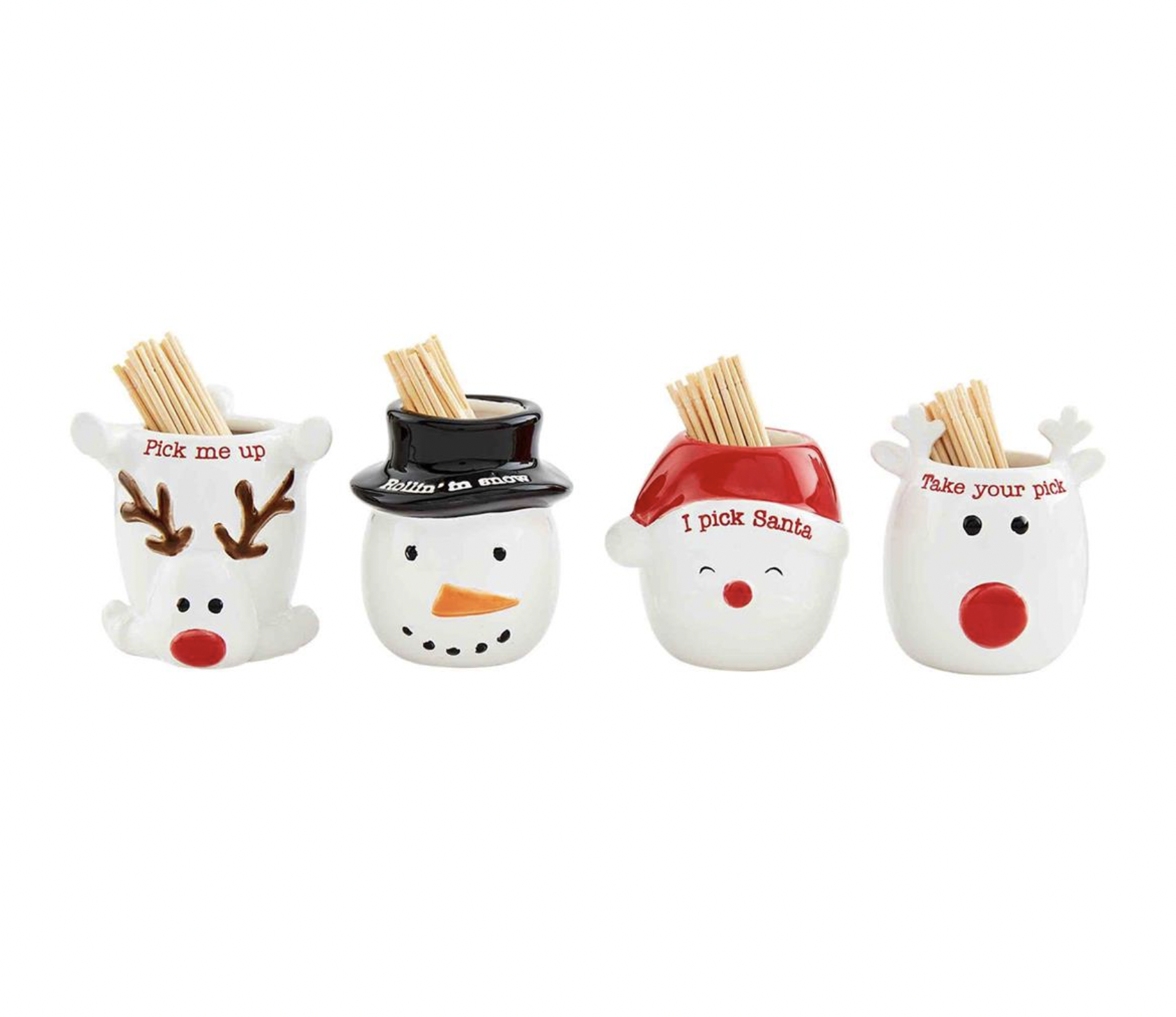 2-piece set. Hand-painted ceramic character caddy comes with pack of toothpicks.