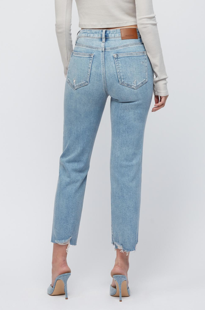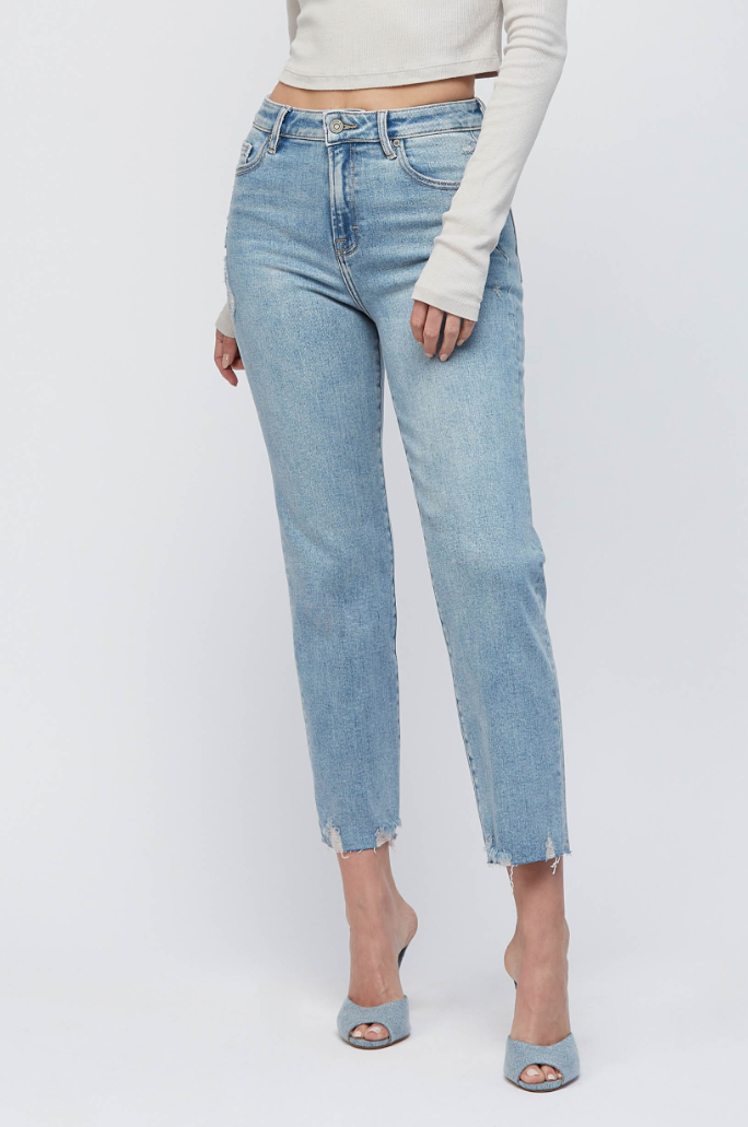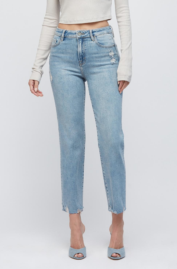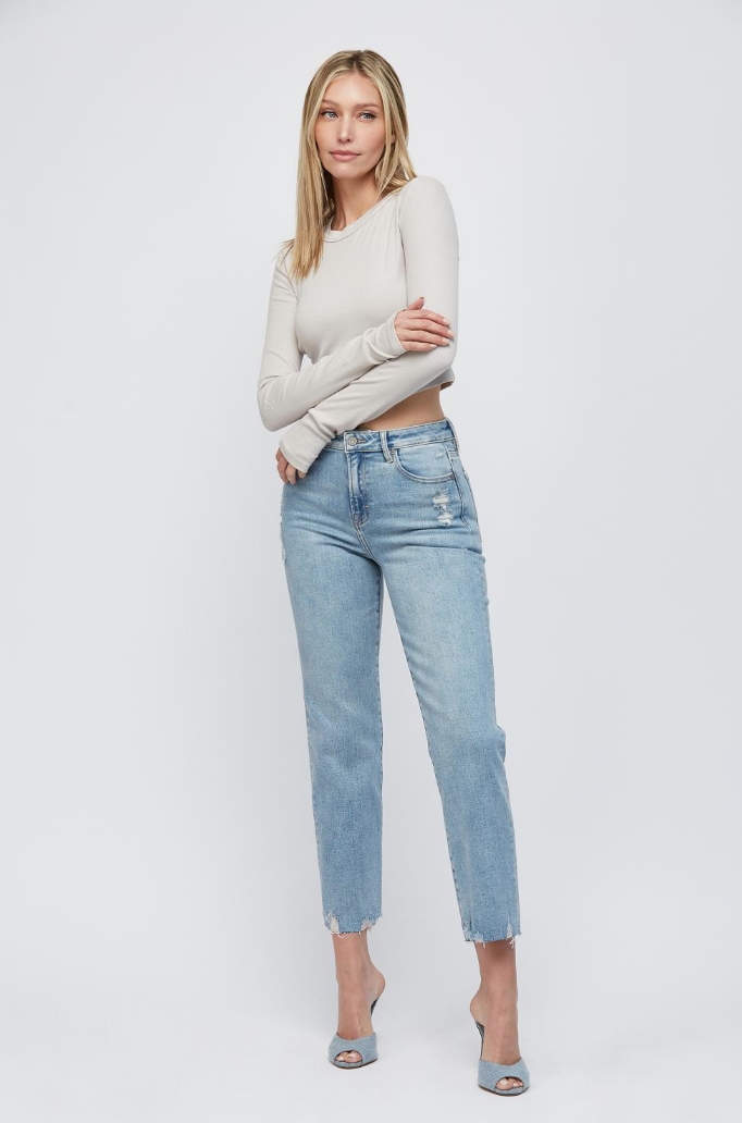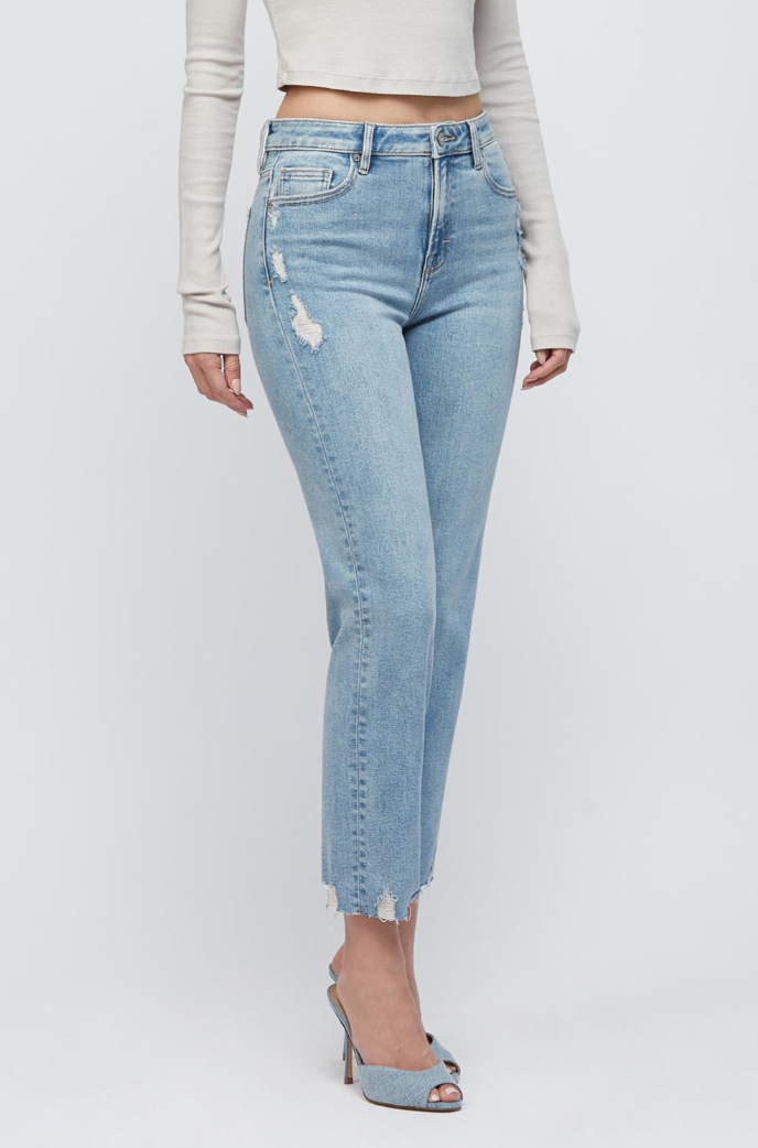 TRACEY JEAN-HIGH RISE CROP STRAIGHT MED/LT WASH