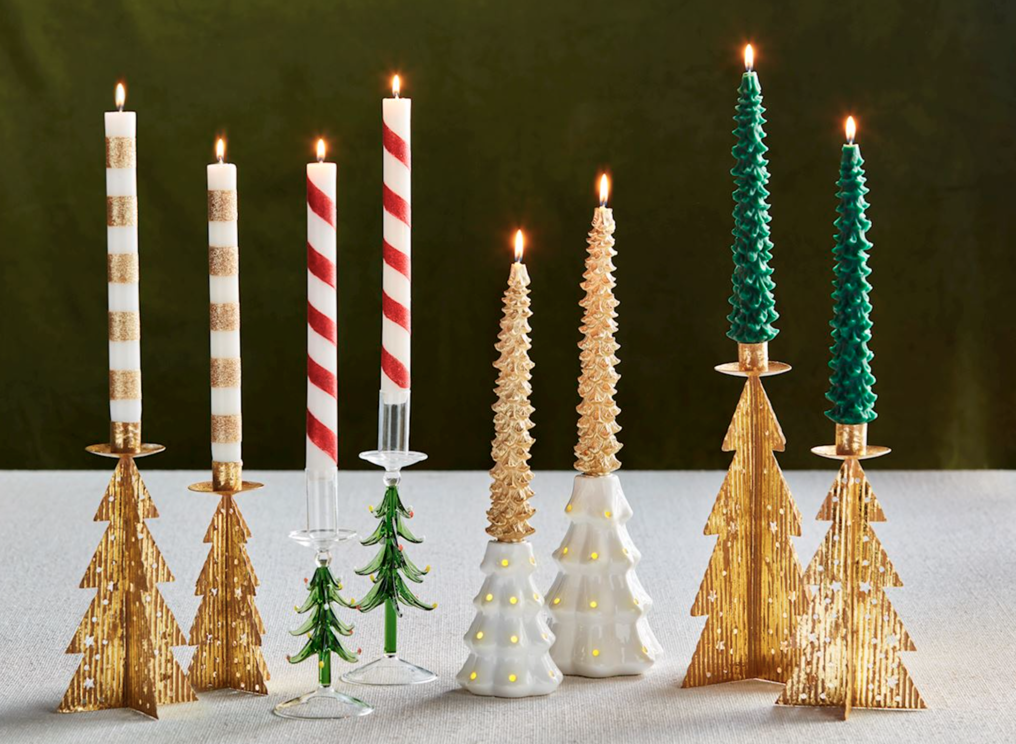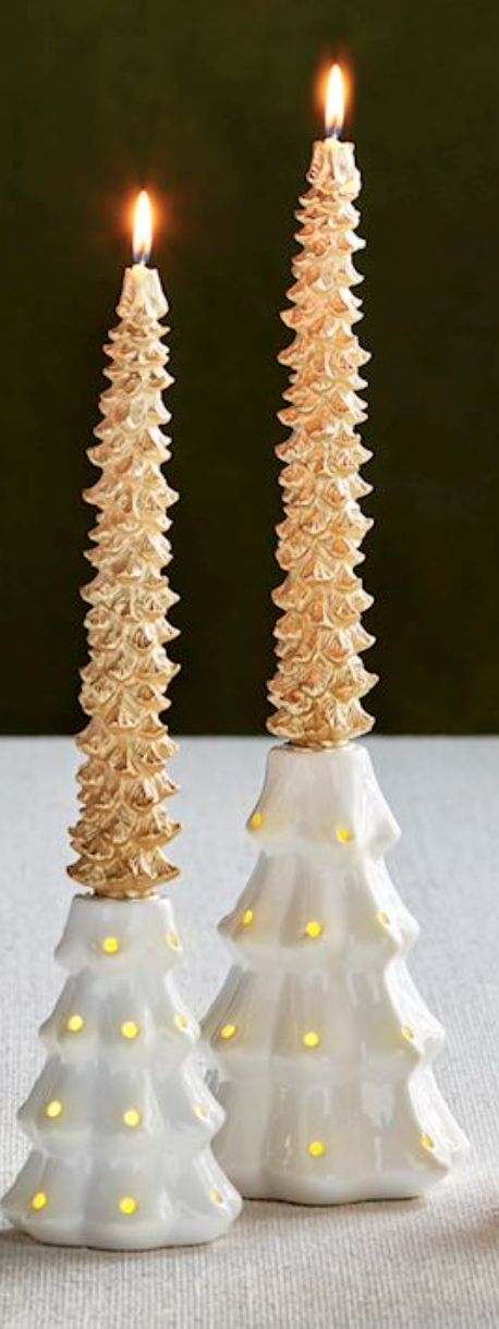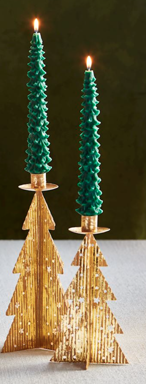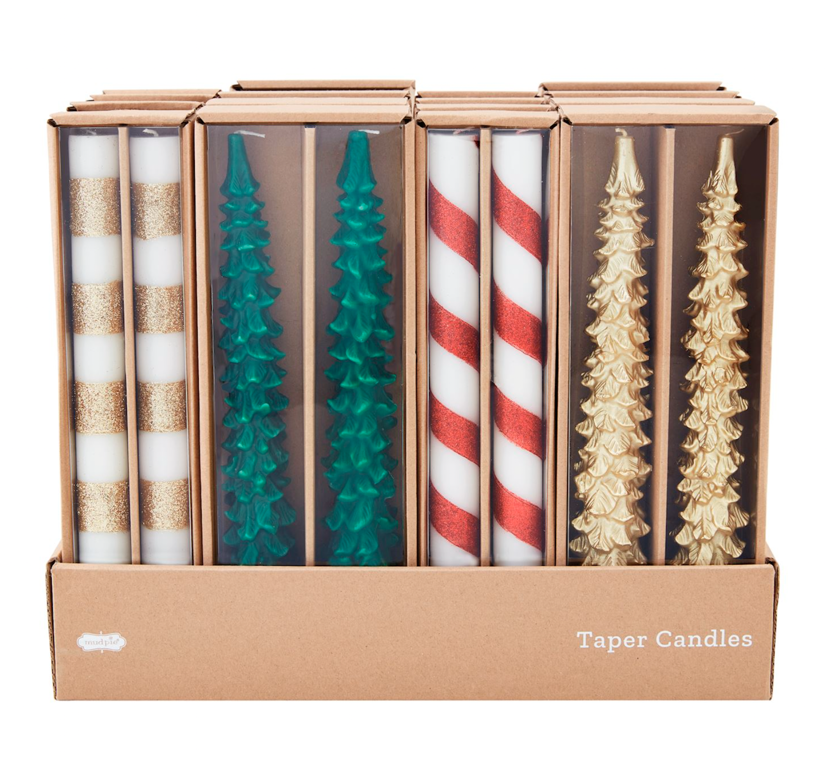 Set of two figural taper candles. Comes gift boxed in kraft displayer.