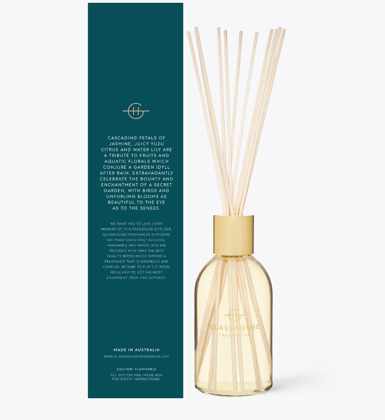 A vibrant blend of Jasmine, Yuzu, and Water Lily captures the magic of a rain-kissed garden, where blooms and birds enchant the senses.
