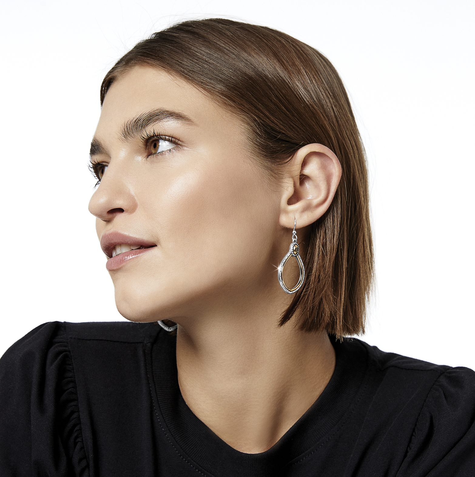 Mixed metal drop earrings matching the Venezia Collection have an eclectic vibe.