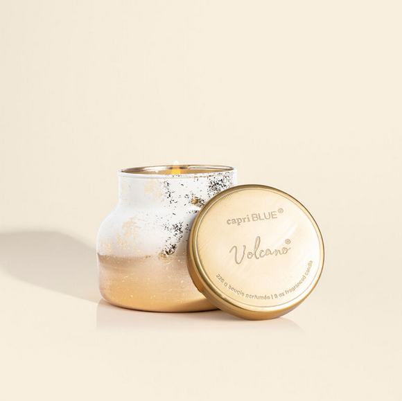 This Volcano Glimmer Petite Jar will give you winter wonderland feels with it's gorgeous winter white and gold finish. And it will warm up any room with our iconic tropical fruits and sugared citrus notes!