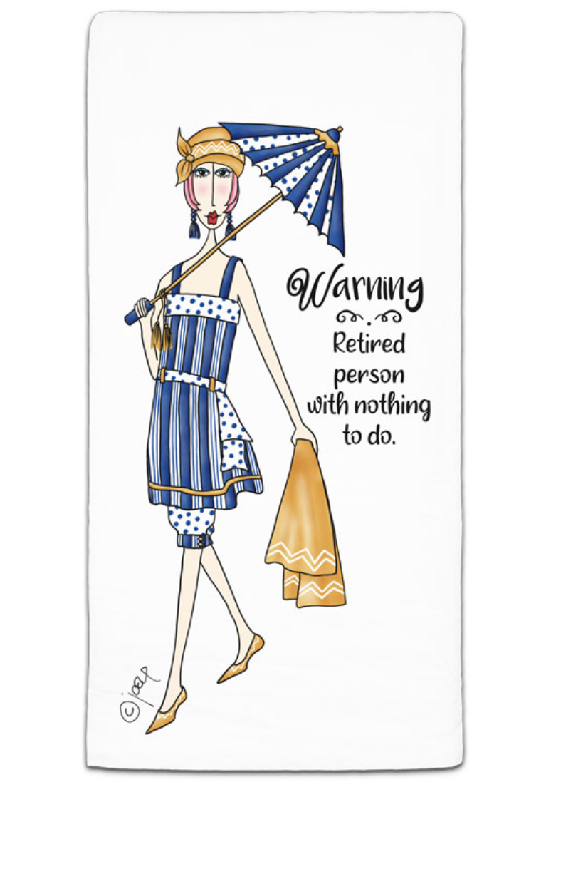 WARNING RETIRED PERSON FLOUR SACK TOWEL