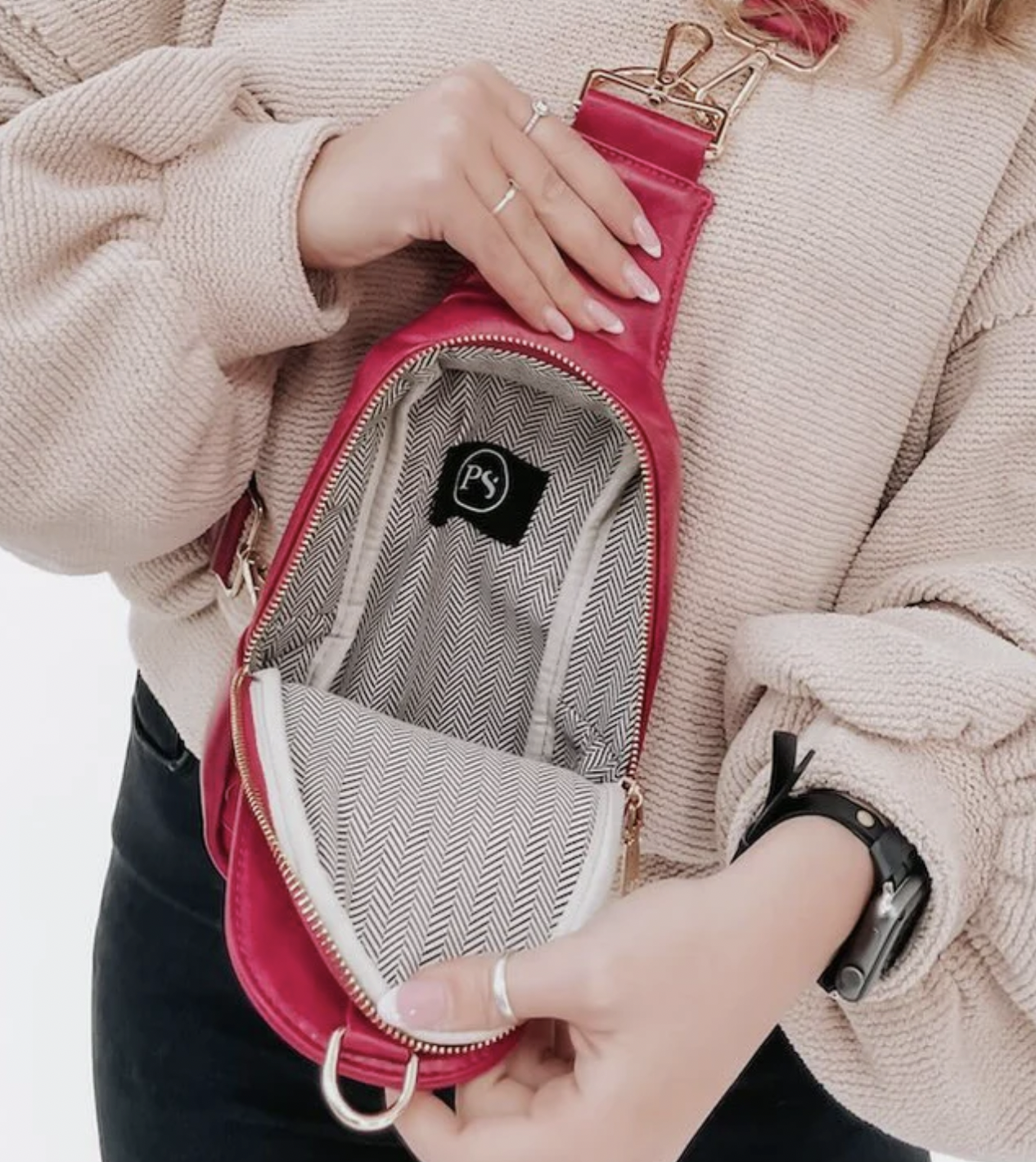 Meet the Waverly Woven Sling Bag by Pretty Simple. This must have is available in 7 beautiful colors, and its woven design is one you'll fall in love with. The Waverly includes an adjustable and removable strap, gold hardware, a compartment with a lock closure in addition to its zipper closure, and a front snap compartment with an interior card holder. But that's not all... The Waverly also comes with a strap extender, allowing you to wear the bag to fit you perfectly!