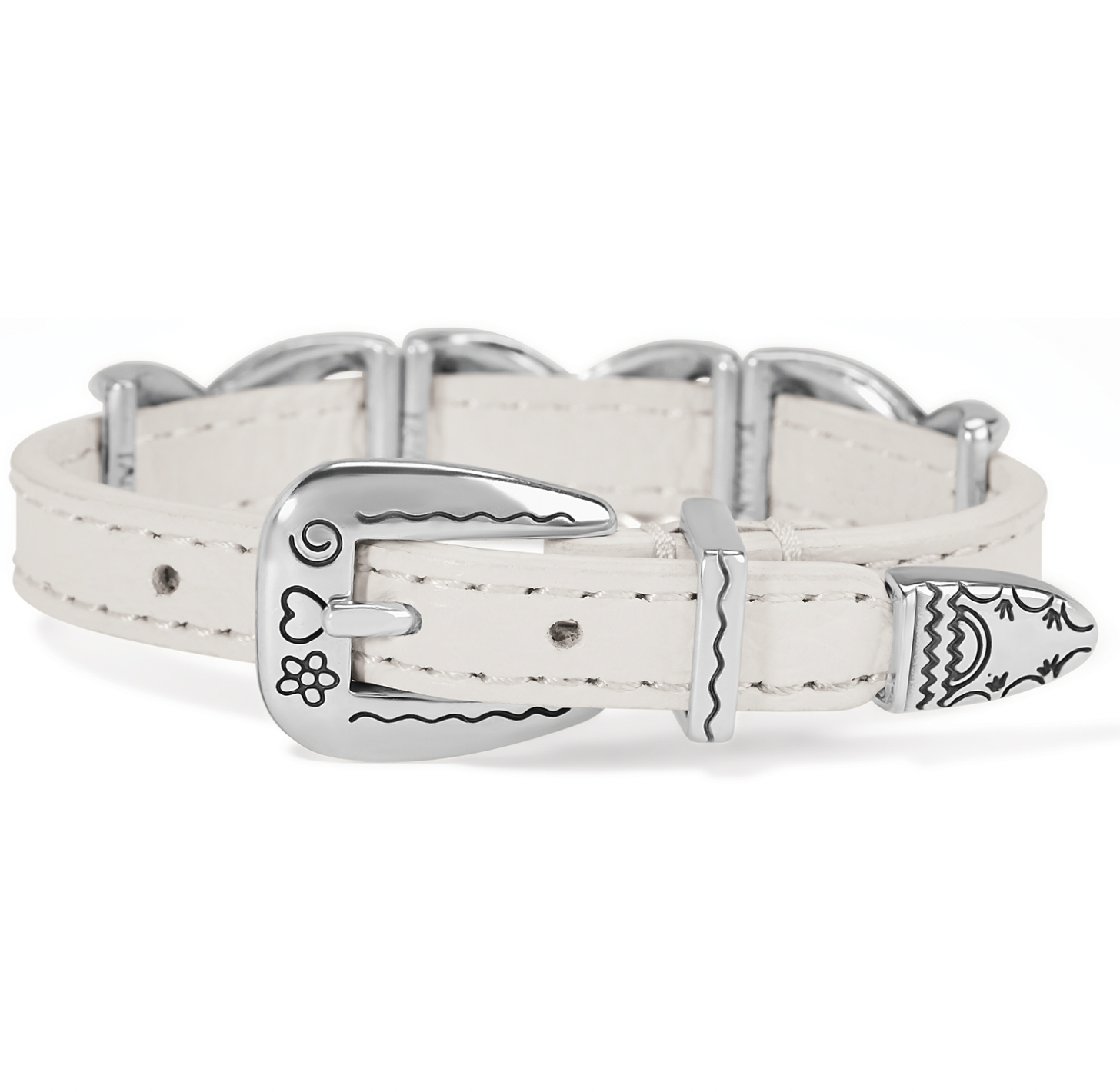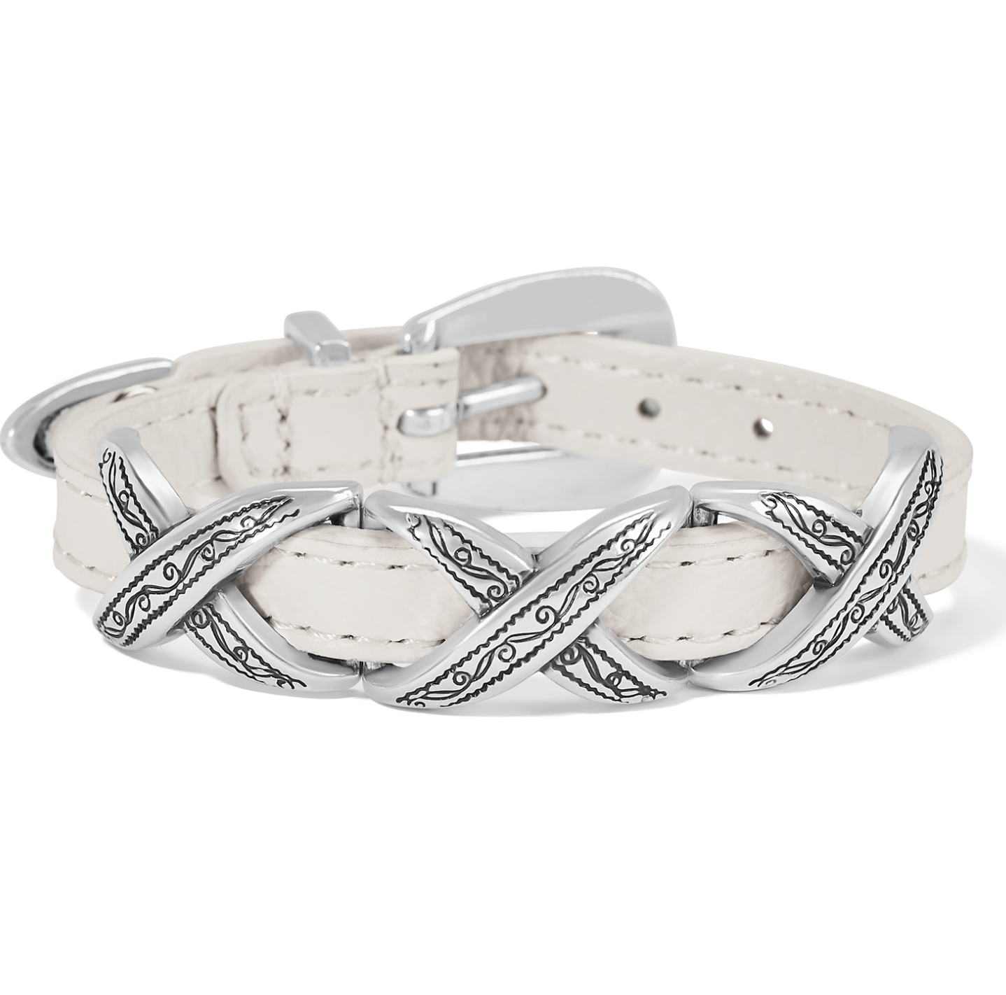 Bracelets inspired by Brighton's leather belts – like this one with crisscross silver-plated accents – are one of the very first jewelry styles Brighton created. Crafted of Italian leathers, they are handcrafted by the Brighton artisans.