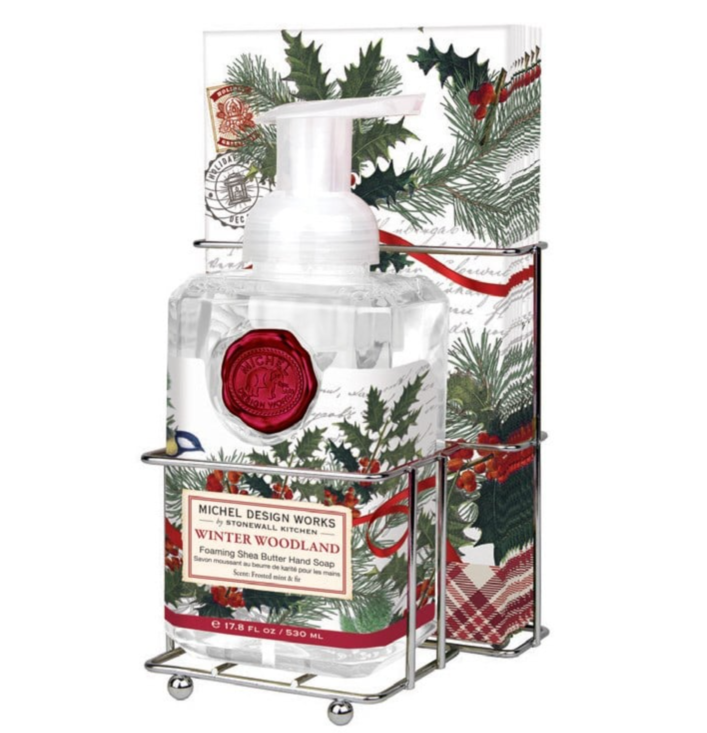 WINTER WOODLAND FOAMING SOAP & HOSTESS NAPKIN SET
