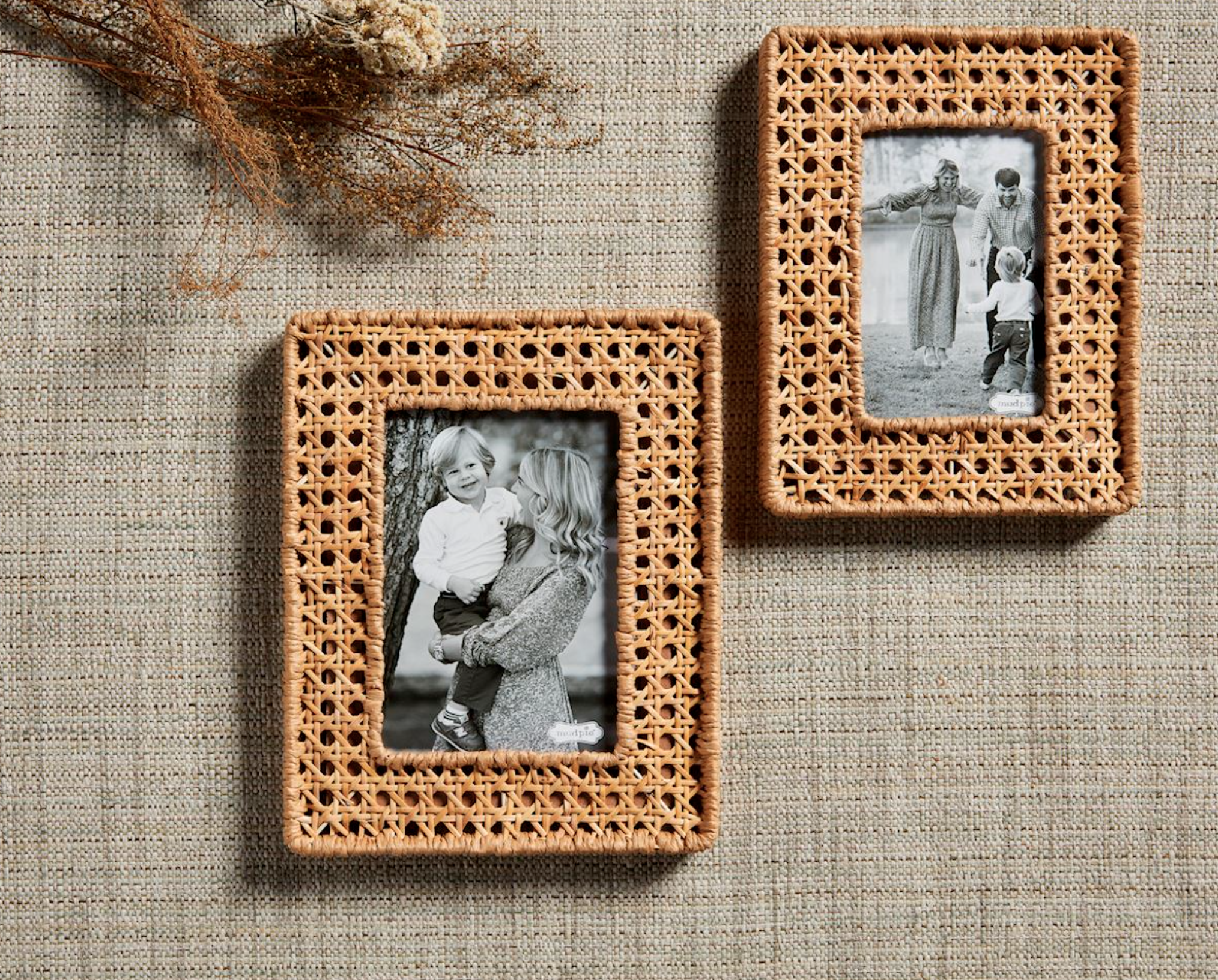 Woven cane 4" x 6" or 5" x 7" frame. Easel back.