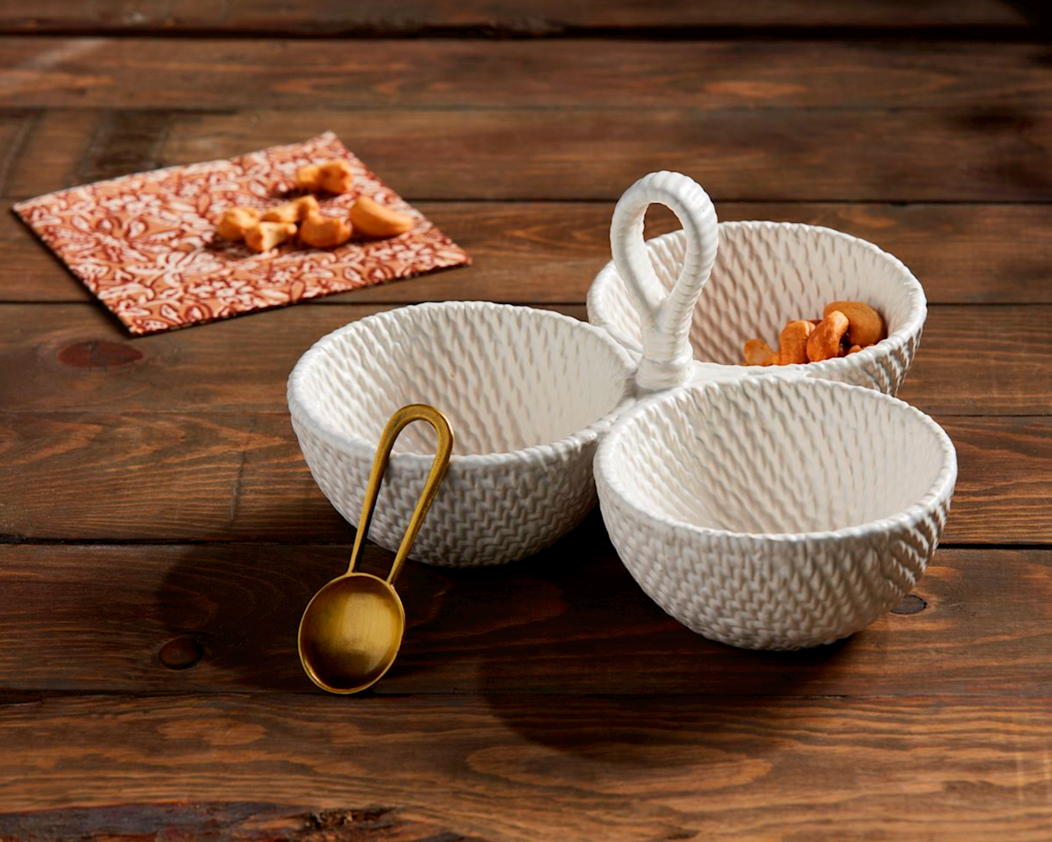 WOVEN STONEWARE TRIPLE TIDBIT SET